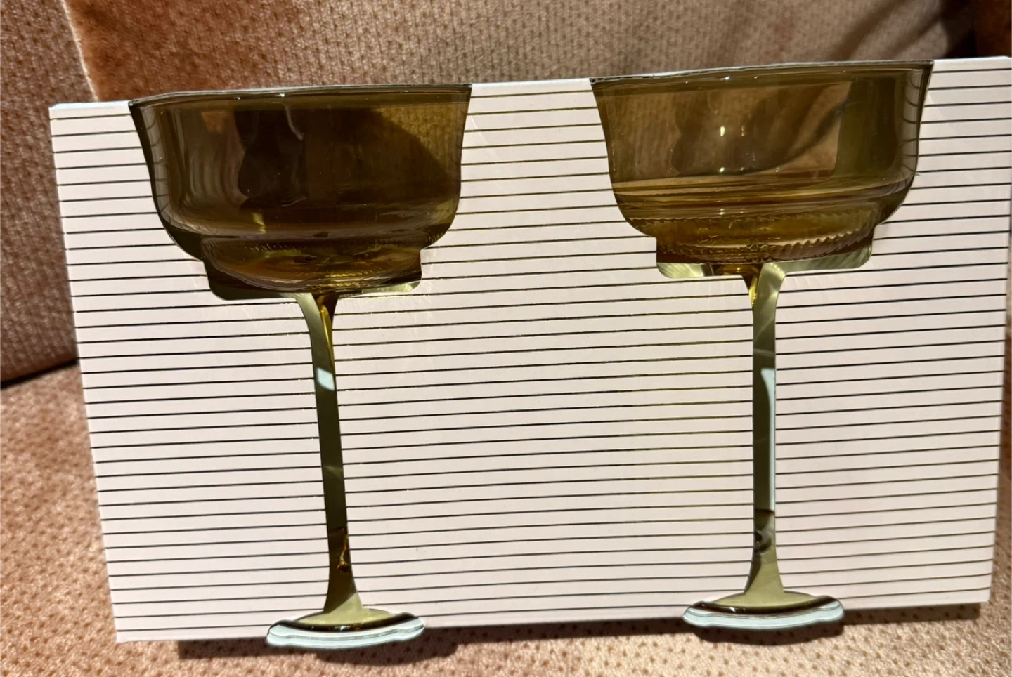 Selling a set of 2 Samantha Pynn coupe cocktail glasses. They're UNOPENED BRAND NEW!