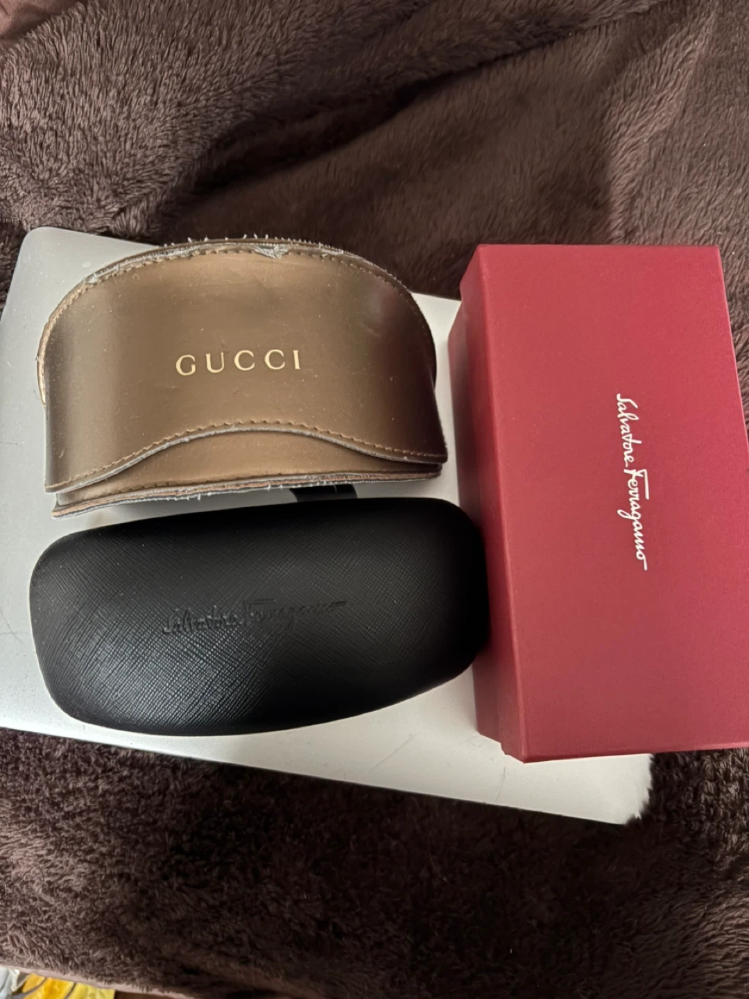Selling two eyeglass cases: one Gucci and one Salvatore Ferragamo. Both are excellent condition and ready to protect your glasses!