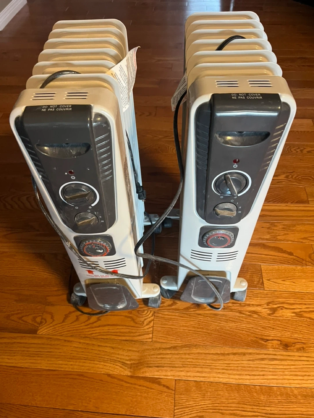 Two oil-filled radiator heaters available. These units have adjustable thermostats and are designed for efficient heating. They're a great way to add warmth to any room.