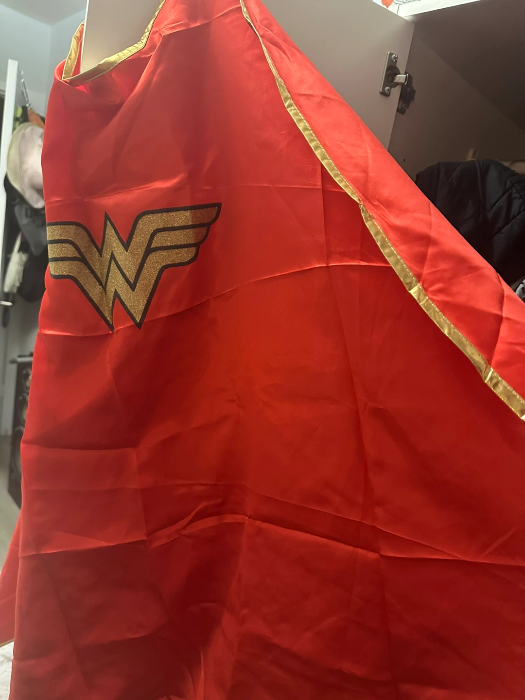 Selling a DC Comics Wonder Woman cape! It's in great condition and features the classic Wonder Woman logo. Perfect for dress-up or cosplay