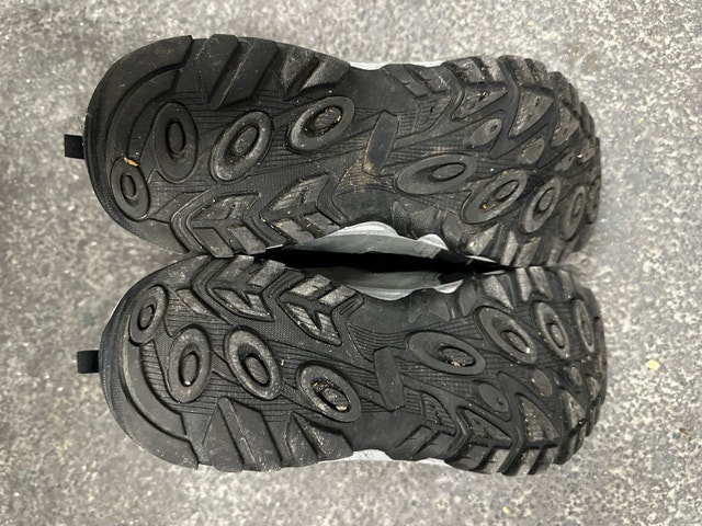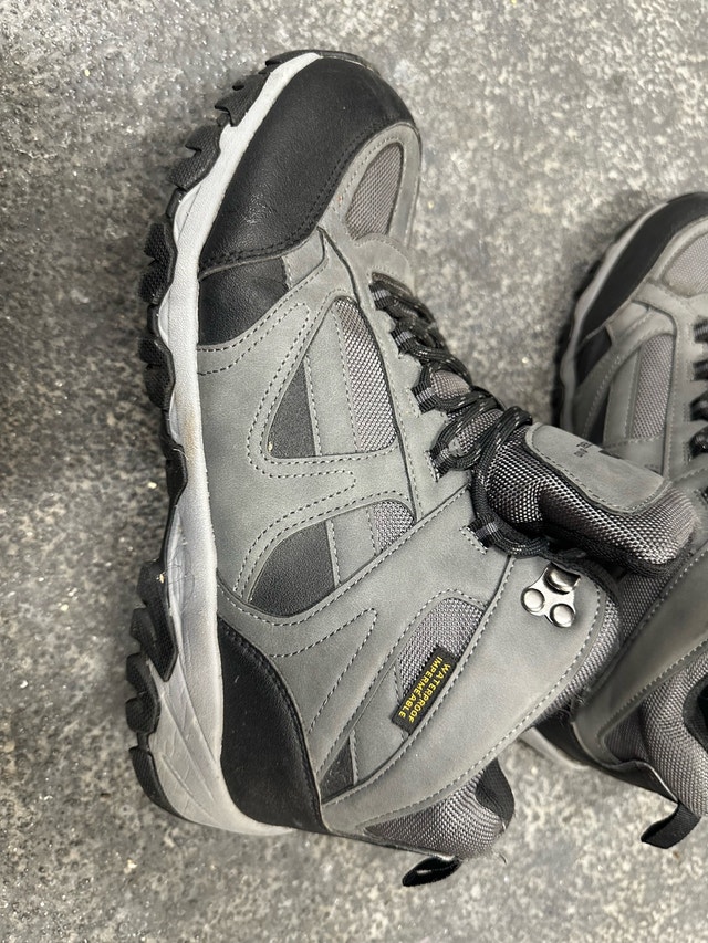 Grab these Ozark Trail waterproof hiking boots, perfect for hitting the trails! These used, grey, size 12 boots are in good condition and ready for adventure. They feature a durable outsole for great traction on any terrain.