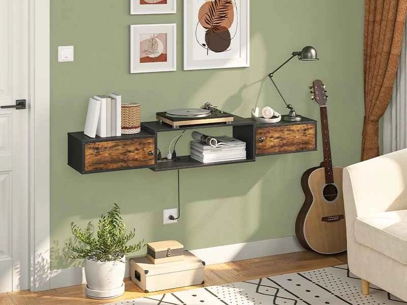 Floating TV Stand with Power Outlet Media Console