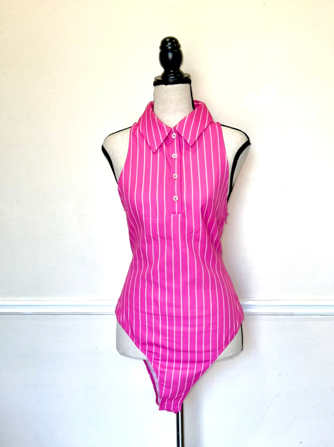 Pink striped bodysuit & pink Pleated Skirt with Belt