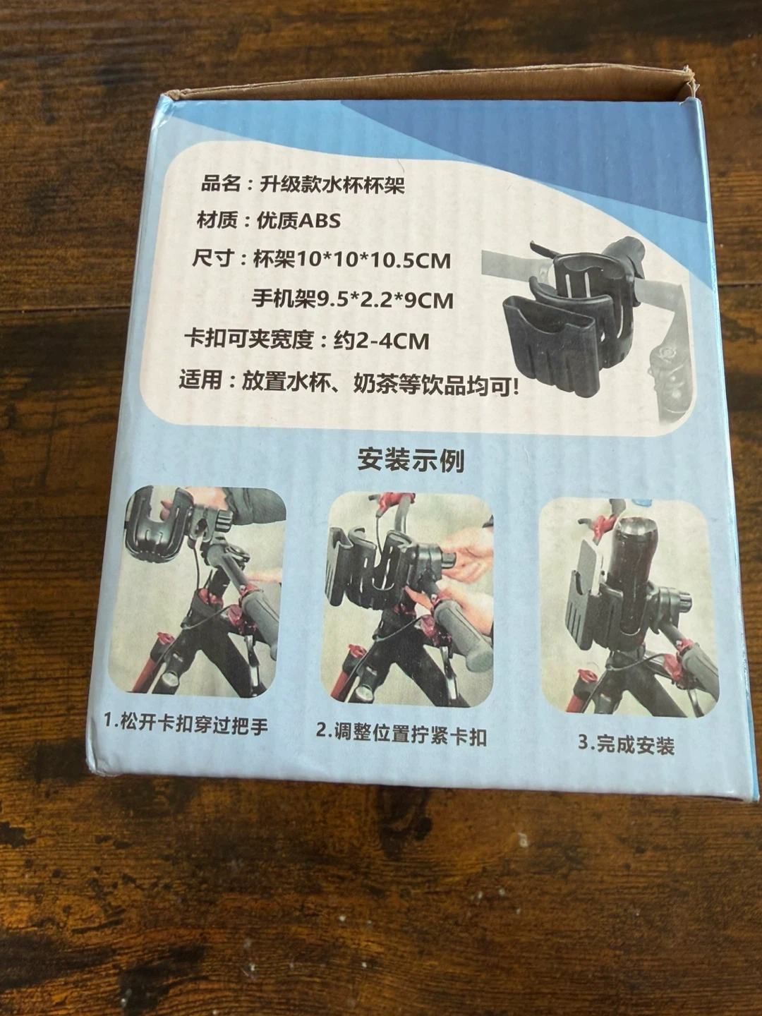 This is an upgraded water cup holder designed for bicycles or strollers. It's made of durable ABS material. The holder measures 10cm x 2.2cm x 10.5cm, and the phone holder section is 9.5cm x 2cm x 9cm. It's suitable for placing water cups, milk tea, and other beverages. It can also hold phones with a width of approximately 2-4cm.