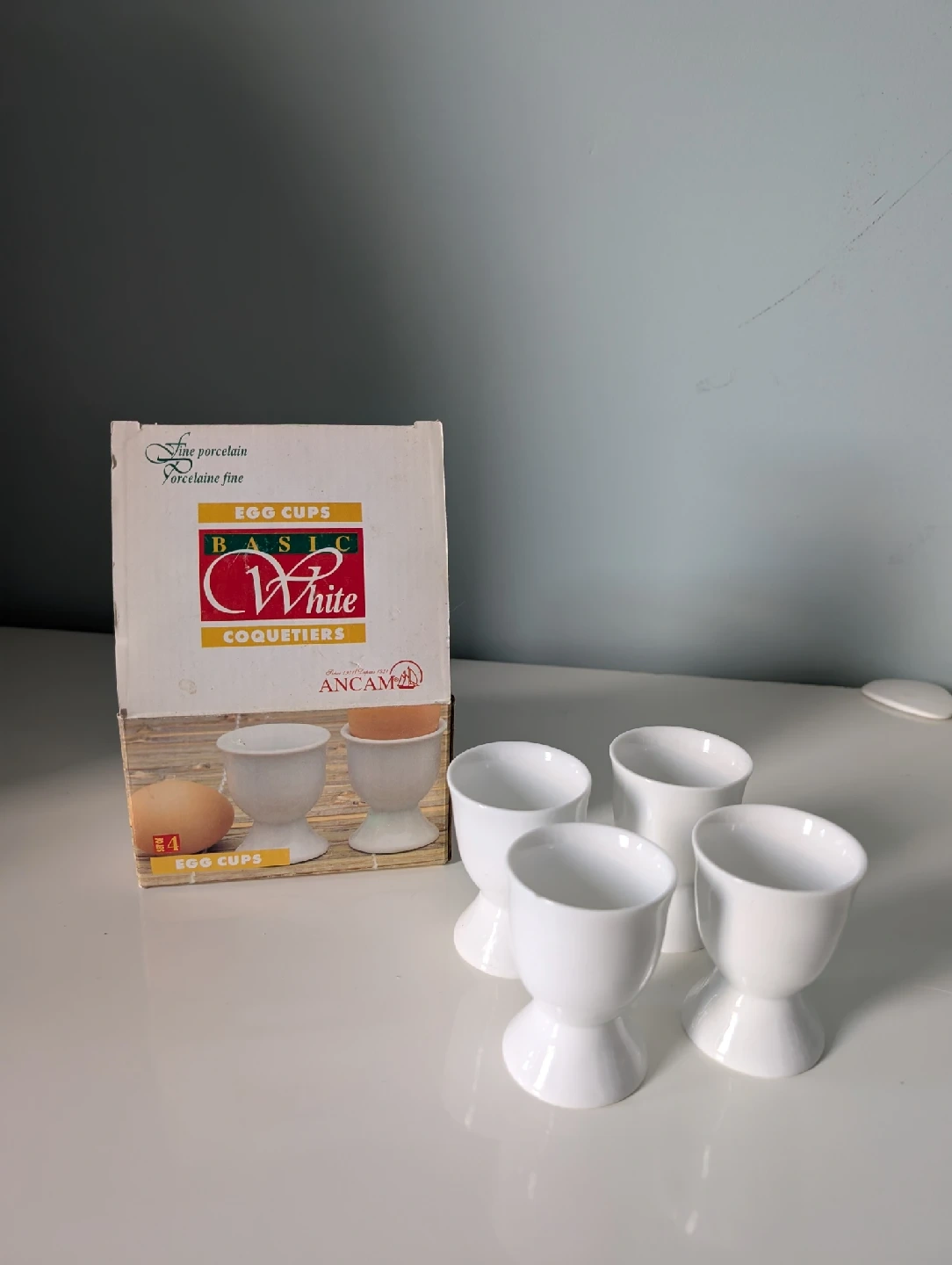Buy & SellEgg Cups (Set of 4)Egg Cups (Set of 4)Freeset of 4 Ancam 'Basic White' porcelain egg cups! They're in great shape and come with the original boxConditionGoodWHERE TO MEETWynford DriveView MapSELLERNicoleBanbury635 reviews1 chats·1 favorites·39 viewsSEND CHAT TO SELLERHi Nicole! I’m interested in your listing.Hi Nicole! I’m interested in your listing.Get the Karrot app to chatSign In to chat
