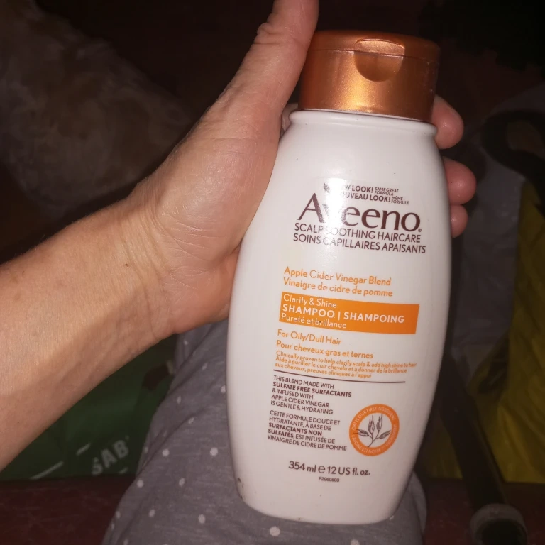 Aveeno Clarify & Shine Shampoo with Apple Cider Vinegar Blend. It's made with sulfate-free surfactants and is gentle and hydrating. This formula is clinically proven to help clarify scalp and add shine to hair. For oily or dull hair.
