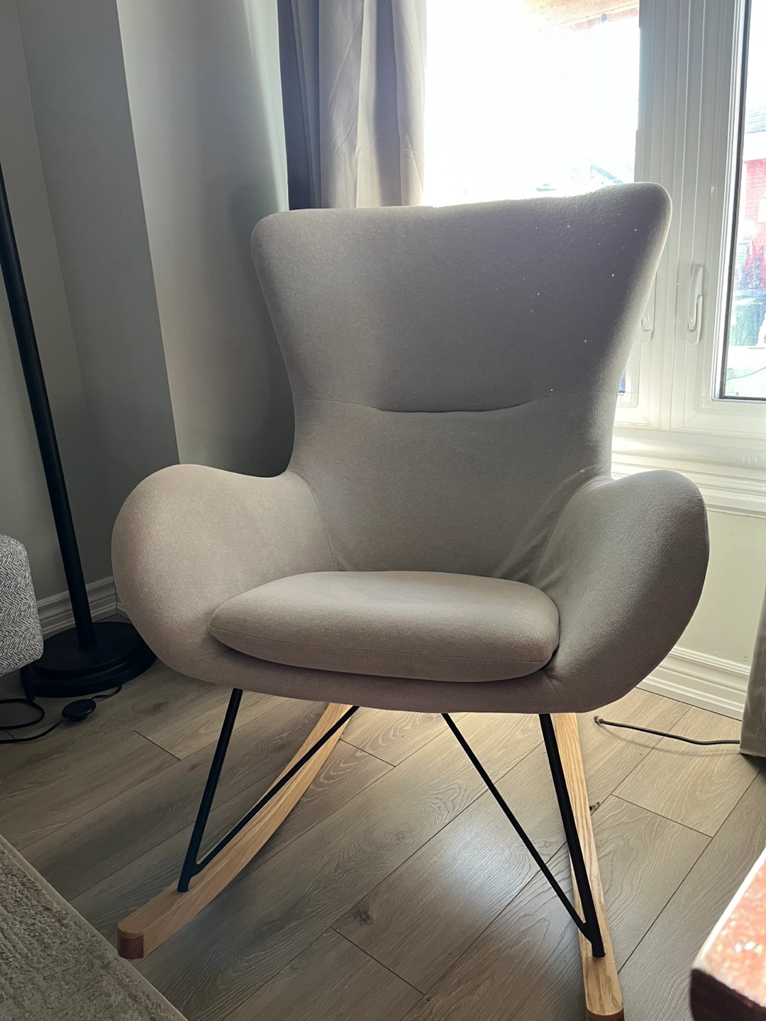 Beige Rocking Chair with Wooden and Black Metal Legs