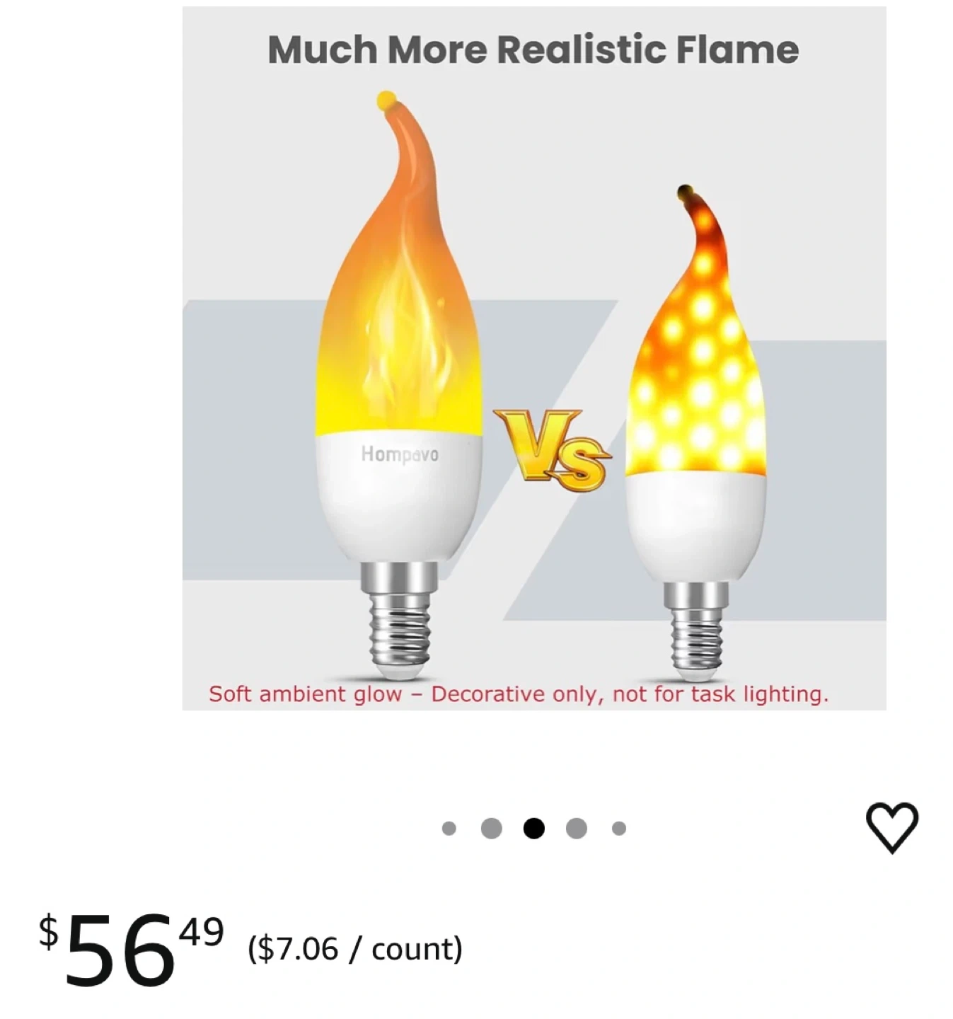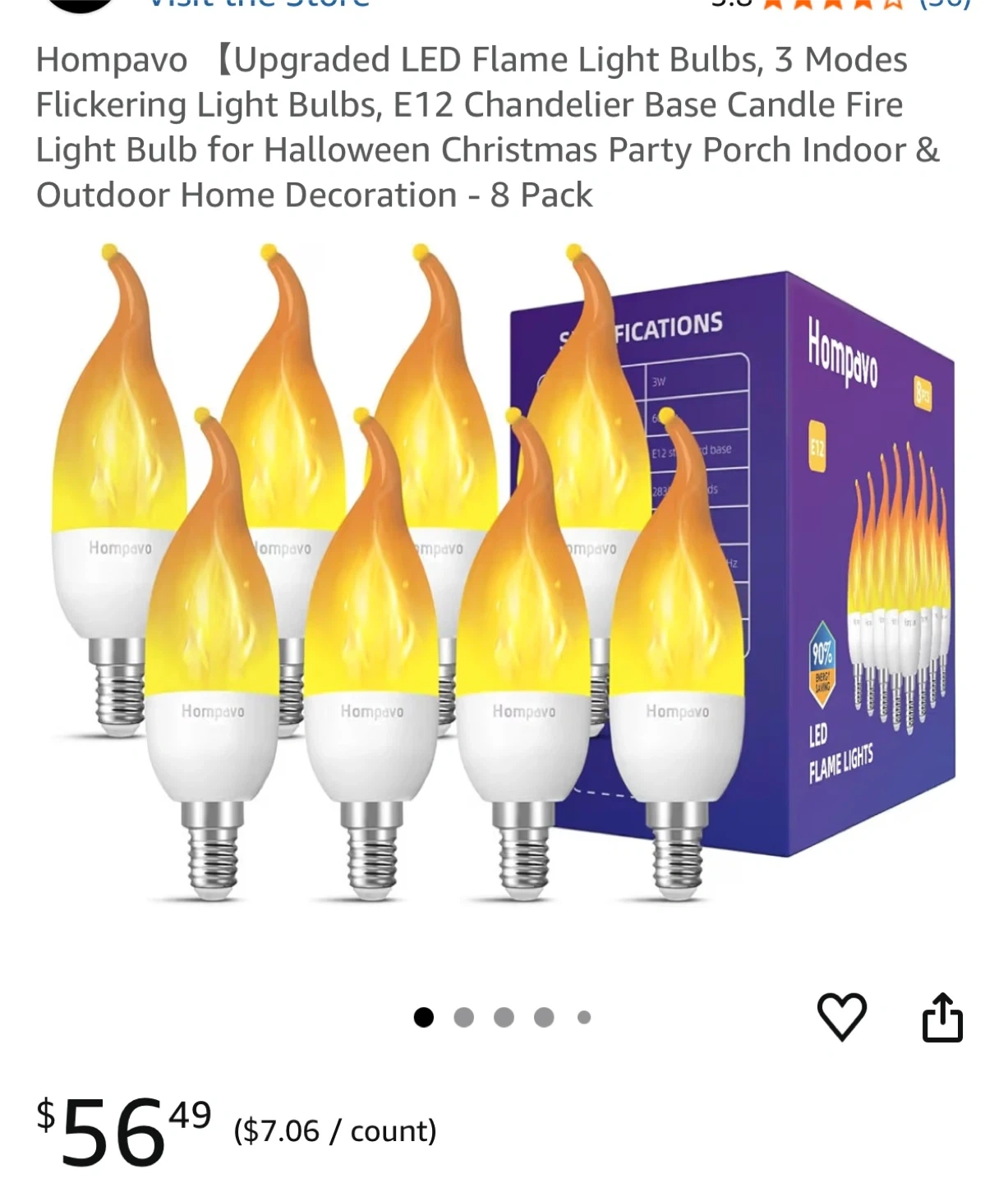Get a set of eight Hompavo LED flame light bulbs with an E12 chandelier base. These bulbs feature a realistic flickering flame effect and are energy-saving. They're great for adding ambiance to Halloween, Christmas parties, porches, or patios with 3 settings