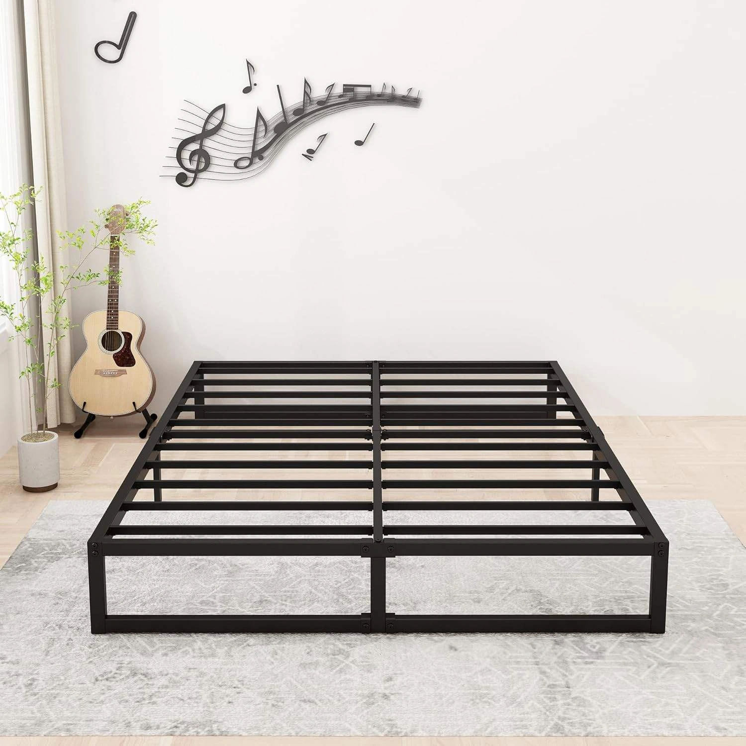 12 Inch Bed Frame Queen Size Heavy Duty Steel Slat Support Metal Platform Queen Bed Frame No Box Spring Needed, Easy Assembly, Black.