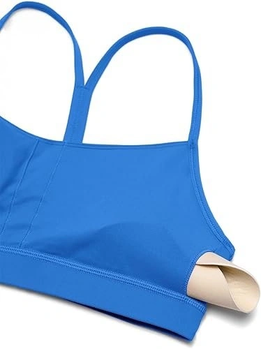 Designed for yoga with light support. Features the Butterluxe collection's extremely soft and ultra stretchy fabric for luxurious comfort. Suitable for A-D Cups, with an underbust range of 28-38 inches. Includes built-in removable pads. Scoop neckline and elastic band for support. Spaghetti straps with a racerback design allow for a full range of movement. Fabric is extremely soft, lightweight, and ultra stretchy with gentle compression. 4-way stretch, brushed finish. Made of 81% Polyamide, 19% Lycra.