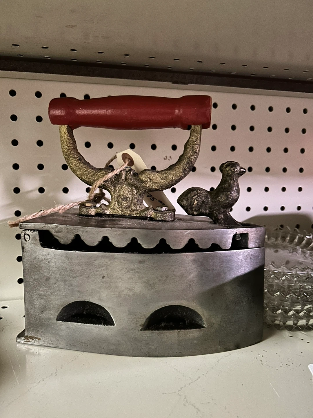 Antique Cast Iron Clothes Iron with Rooster Accent