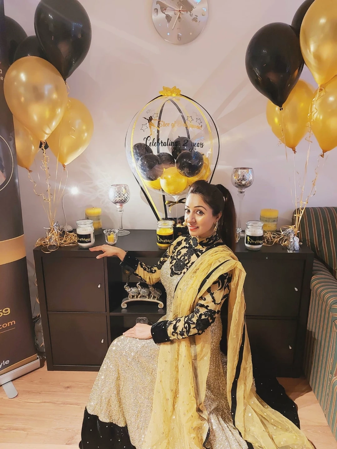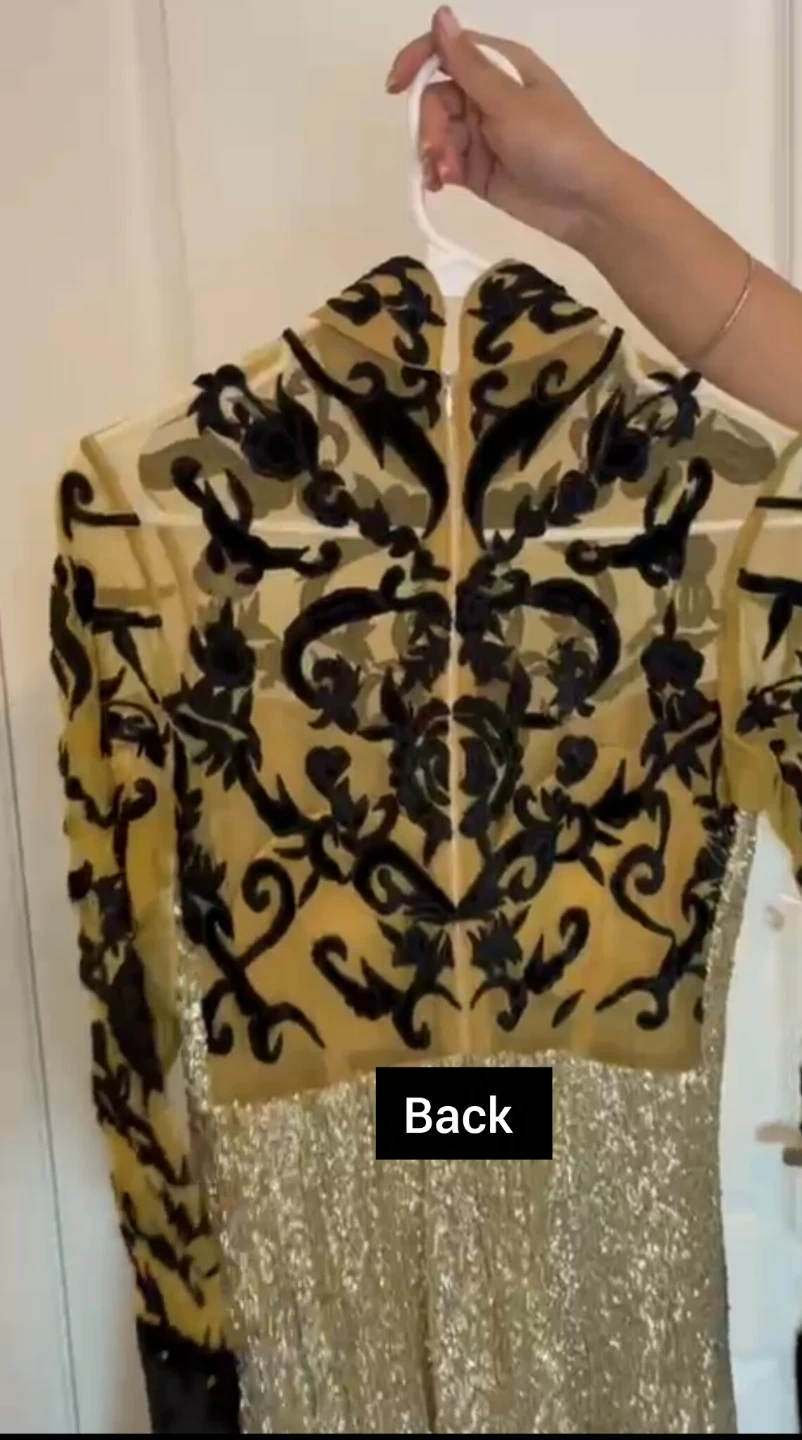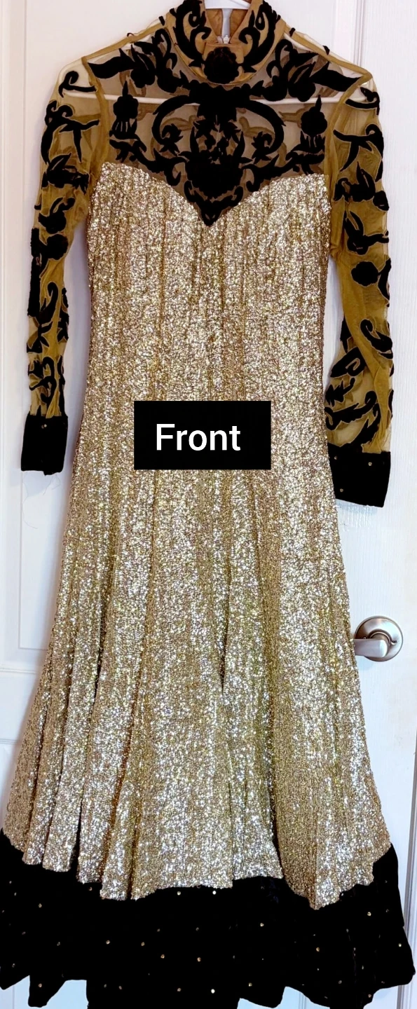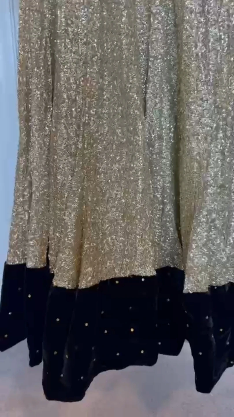 Indian Gold Sequin Dress with Black Velvet Details
