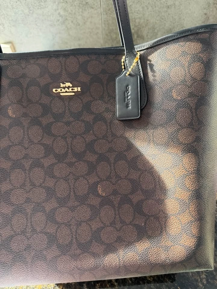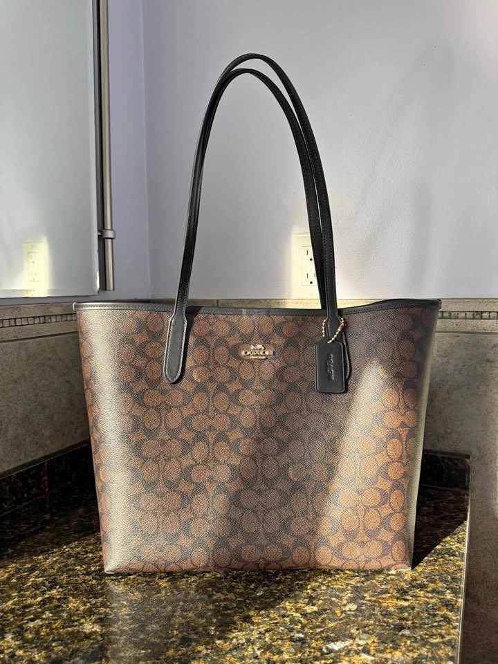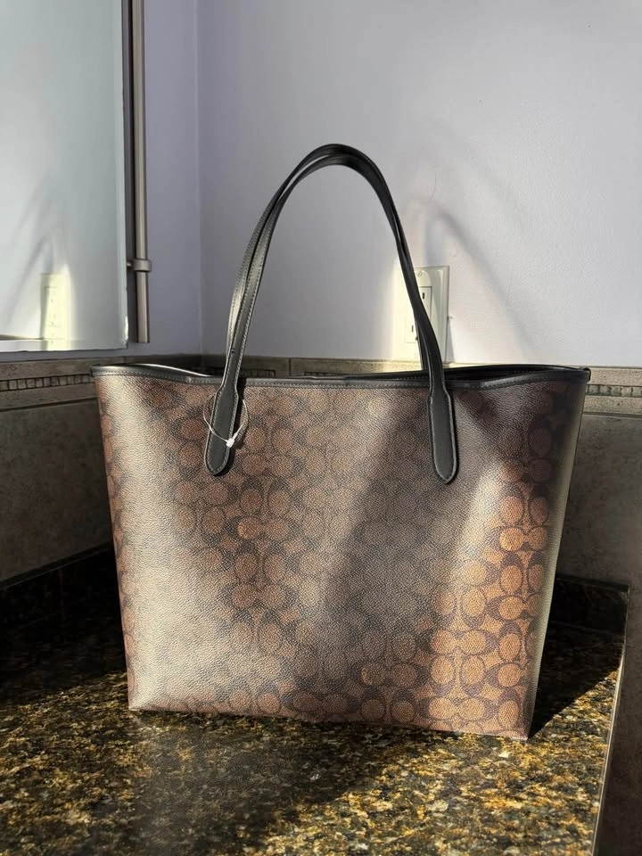 Brand new Coach City tote bag, not my style. Features an inside zip pocket and snap closure. Measurements: Length 13.0", Height 11.5", Width 6.25", Handles with 10" drop.