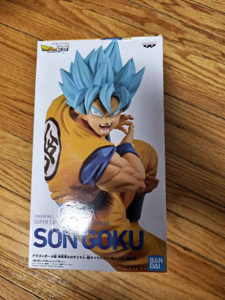 Awesome Dragon Ball Super Son Goku figure. This is the Super Saiyan Blue version by Banpresto. Comes with original box. Looks great for display.