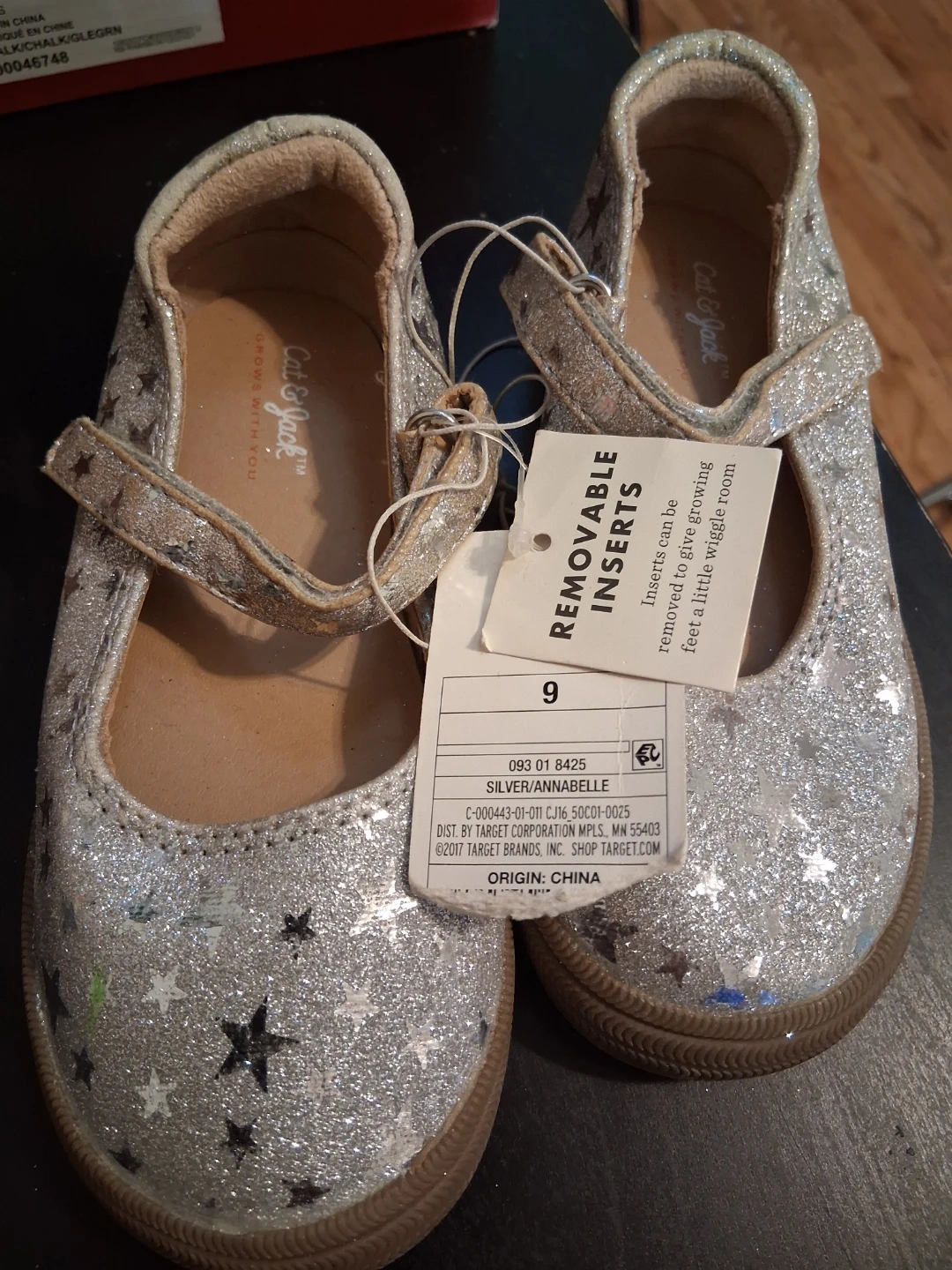 Cat & Jack Girls Silver Star Mary Jane Shoes Size 9