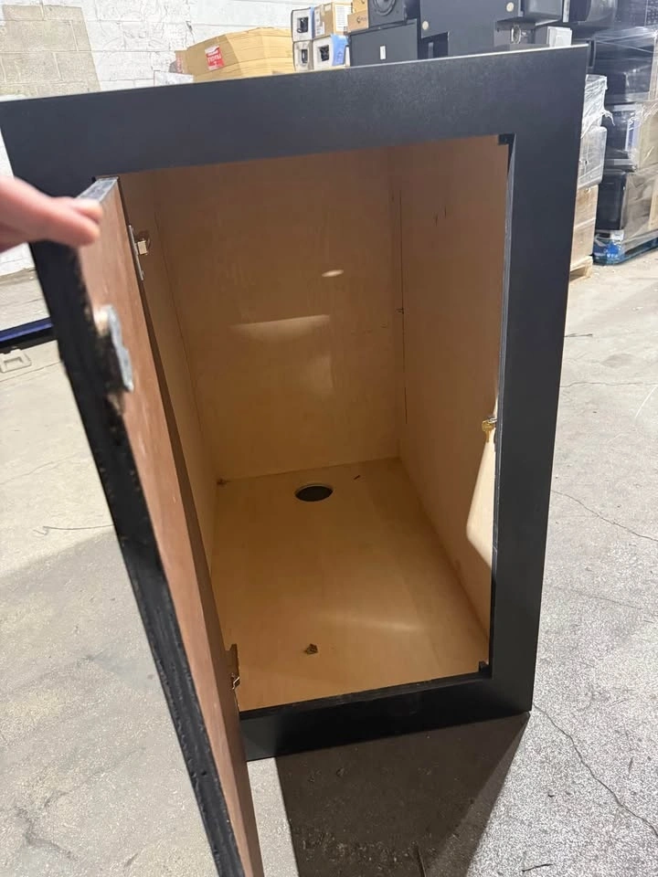 Solid commercial wooden cabinet with locking door. Originally used to house tech / AV equipment. Heavy-duty wood / MDF. Lock & key included. Clean black finish. Cable hole at bottom for power/data. Very sturdy – not cheap furniture. Dimensions: Width: 2 ft, Height: 3 ft 4 in, Depth: 3 ft 2 in. Perfect for: Server or networking gear, AV / DJ equipment, Security systems, Office or warehouse storage, Custom builds. Branding on side (“#bigdataflash”) — can be covered or removed. Pickup only. Available now – priced to sell.