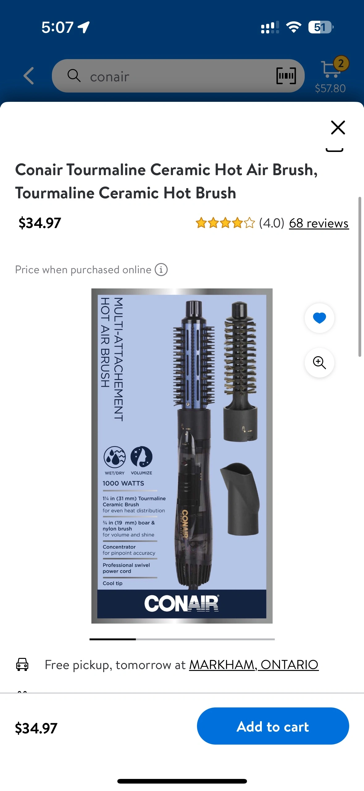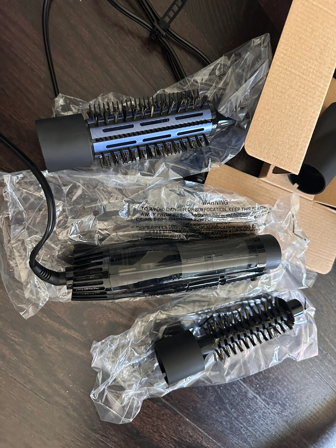 Conair hot air brush with three attachments. Comes in the original box. Just bought a few month, my hair is so thin and not suit for me. Just use 2 times.