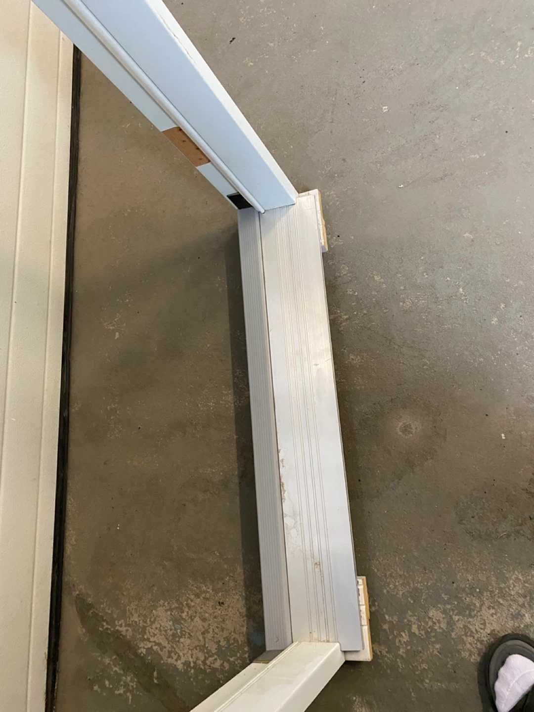 This is a white door frame, likely for an exterior door. It appears to be made of a composite material with a metal threshold. Ready for installation in your home! W81cmxh247cmxd12cm threshold 15.5 cm