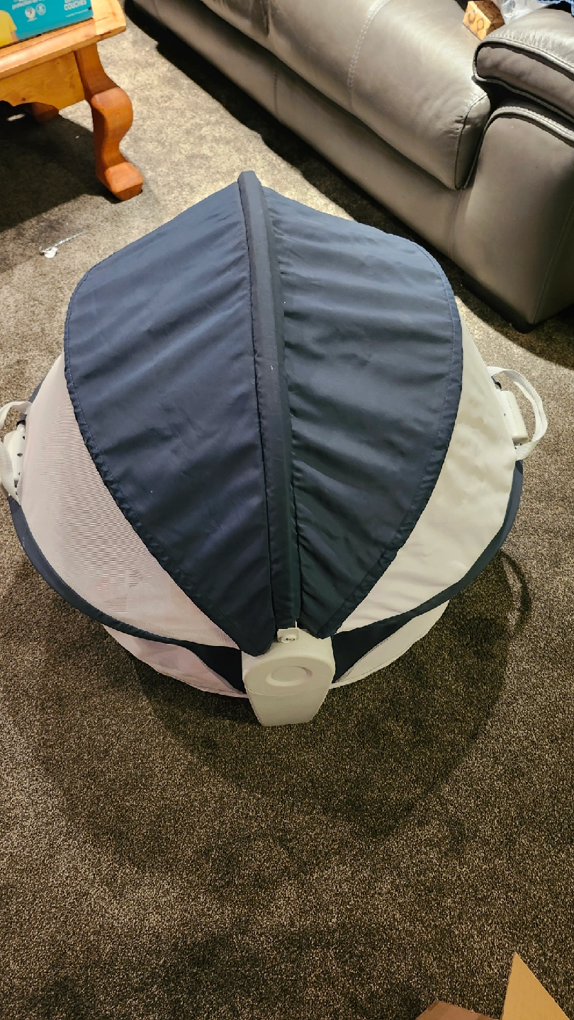 Selling a Infant portable playard! It features UPF20 sun protection for baby and a colourful patterned interior. Great for indoor or outdoor use to keep your little one safe and comfy