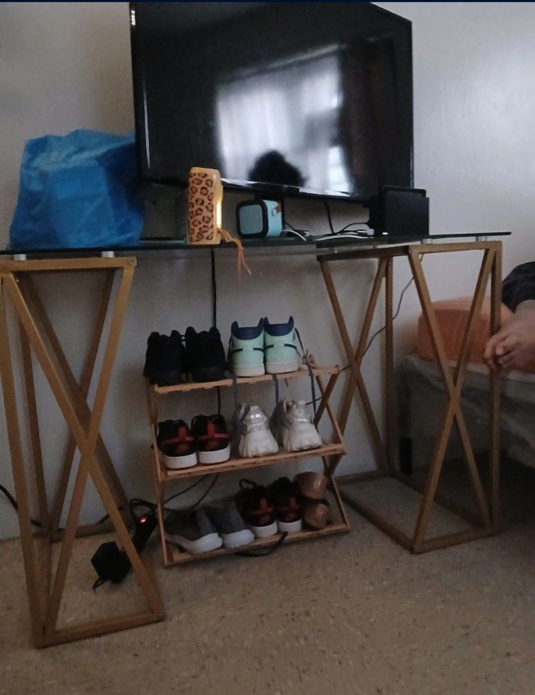 glass table could be used for anything vanity,office desk,TV stand in good condition need gone as i am moving and cannot take with me .