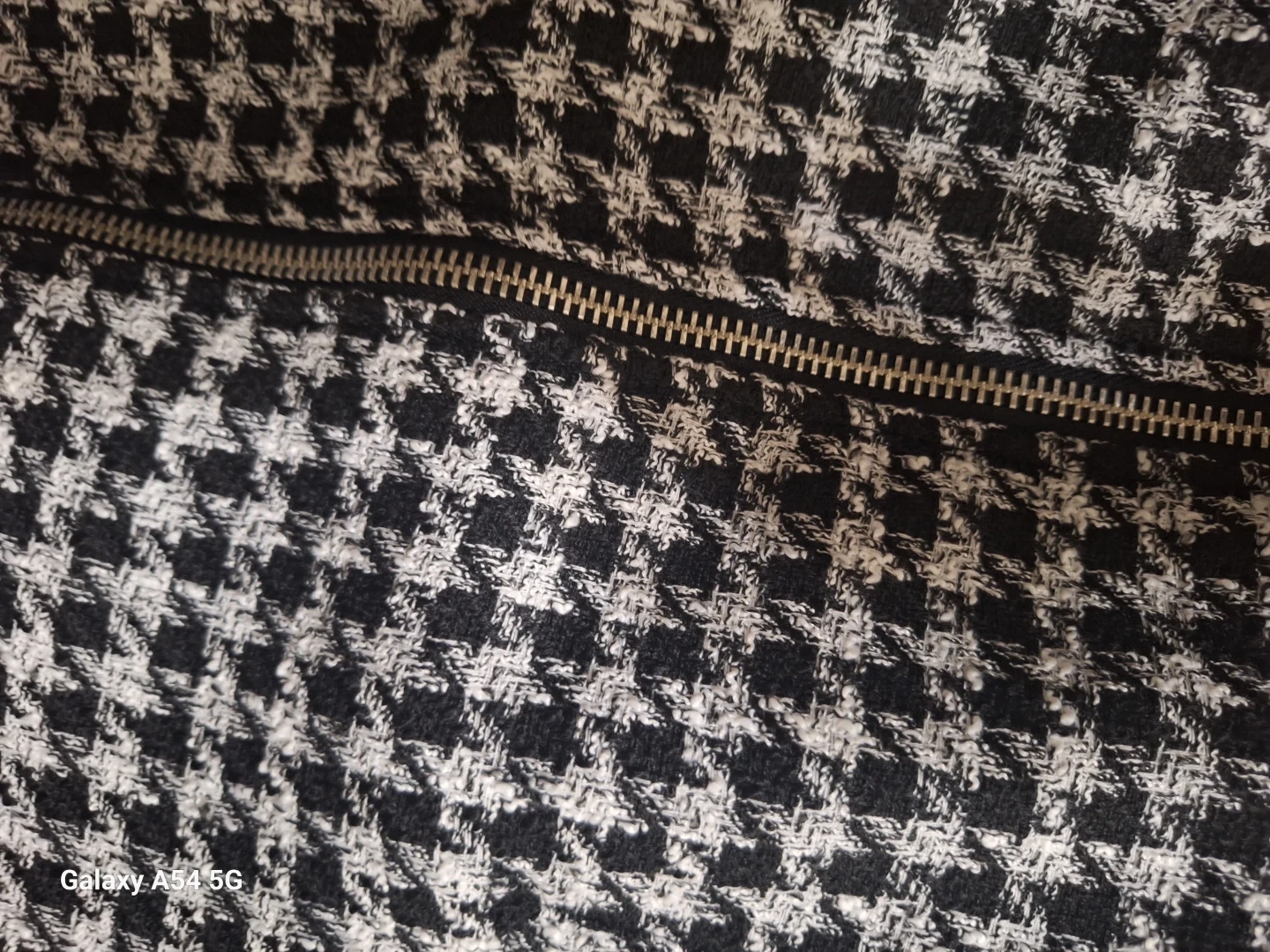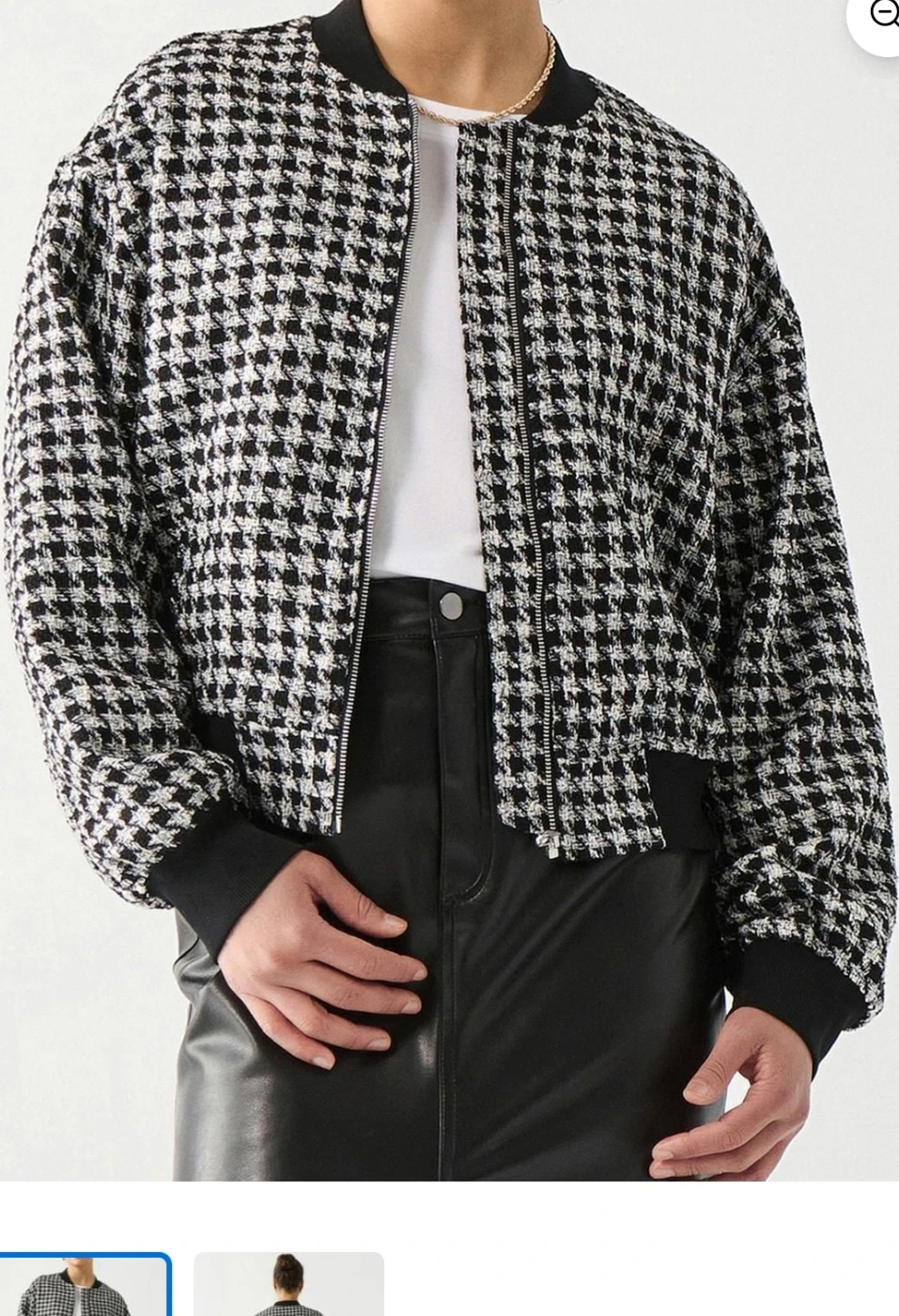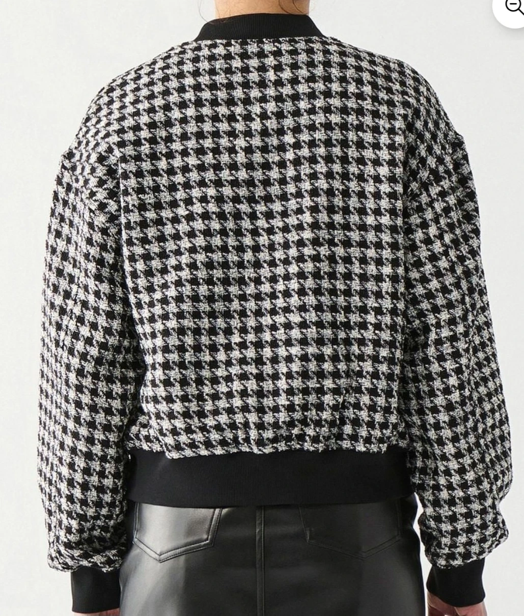 This bomber jacket features a classic houndstooth pattern. It's a stylish piece with a zippered front closure and ribbed cuffs and hem. Made with a textured fabric.