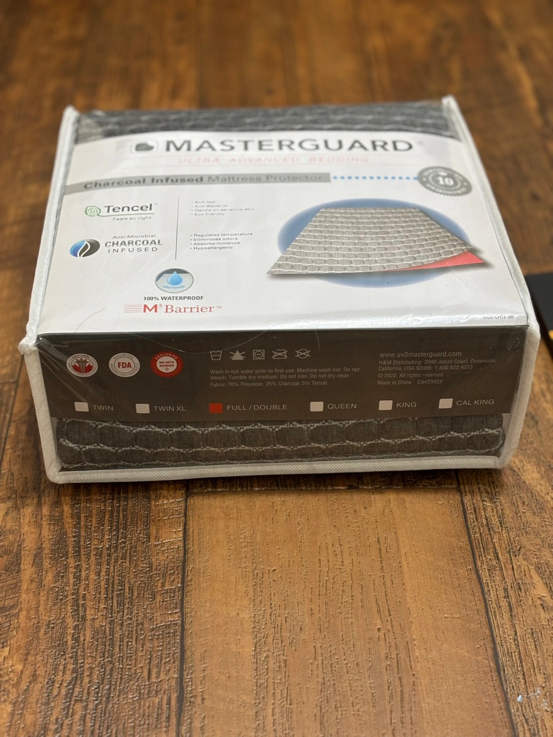 I'm selling a brand new Masterguard Ultra Advanced Bedding mattress protector. It's charcoal infused and feels soft to the touch.