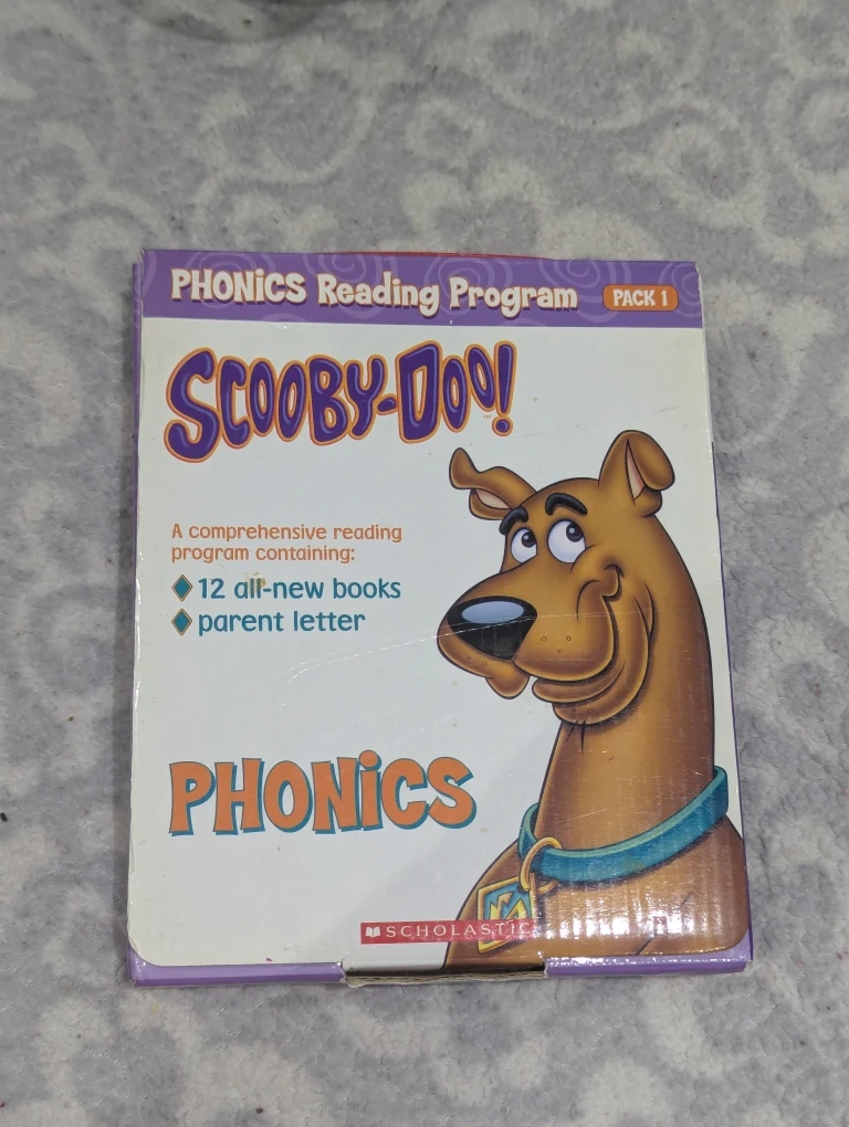 This is the Scooby-Doo! Phonics Reading Program, Pack 1. It's a comprehensive set containing 12 all-new books and a parent letter. This program is designed to help young learners with their phonics skills. It's great for kids just starting to read!