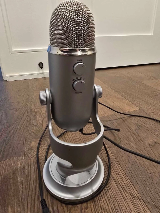 Selling my Blue Yeti USB Microphone in the classic silver finish. This is one of the most versatile microphones on the market, perfect for podcasting, YouTube/Twitch streaming, music recording, or just having crystal-clear audio for Zoom and Teams calls.