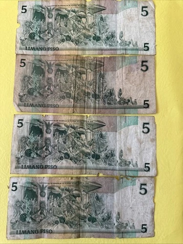 Delve into the rich tapestry of Asian currency with this set of four 5 Philippine peso bills. Originating from the vibrant archipelago of the Philippines, each bill is a testament to the country's history and craftsmanship, showcasing iconic designs that reflect the nation's culture and heritage. Ideal for collectors and enthusiasts of global paper money, this set offers a unique opportunity to own a piece of the Philippines' numismatic legacy. Add these bills to your collection and appreciate the intricate details that make them a standout representation of Asian currency.
