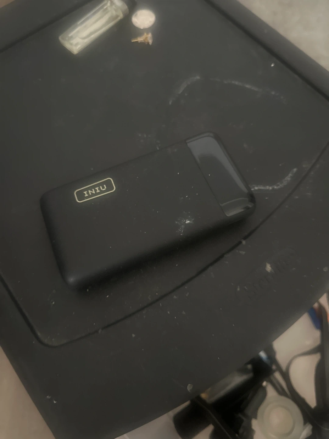 This is an INIU portable power bank. It's a black, rectangular device designed for charging electronics on the go. It's useful for keeping your devices powered up when you're away from an outlet.