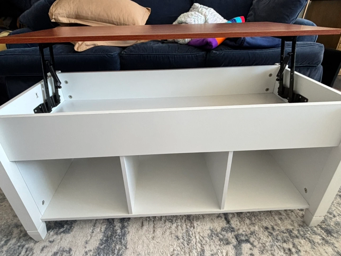 Buy & SellLift Top Coffee Table with Storage CompartmentLift Top Coffee Table with Storage Compartment$60Coffee table with lifting top storage and 3 underneath cubbies. Not too heavy to move!Dimensions41.25” long x 19.5” wide x 19” tallWHERE TO MEETCheck LocationView MapSELLERverifiedHeatherDowntown650 reviews0 chats·0 favorites·11 viewsSEND CHAT TO SELLERHi Heather! I’m interested in your listing.Hi Heather! I’m interested in your listing.Get the Karrot app to chatSign In to chat