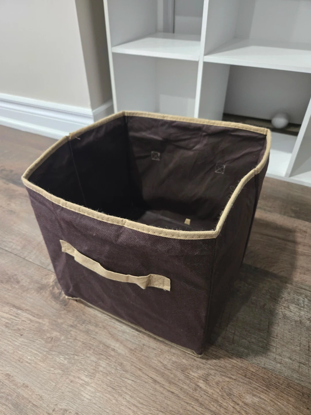 White Cube Shelf with Brown Storage Bin