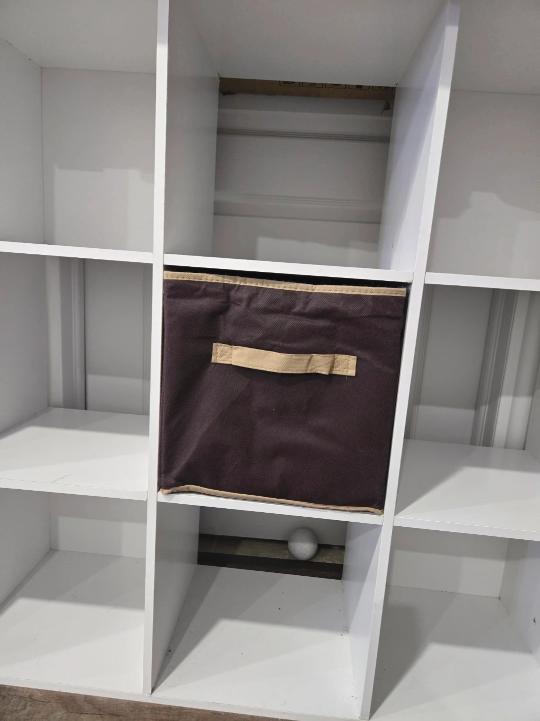 White Cube Shelf with Brown Storage Bin