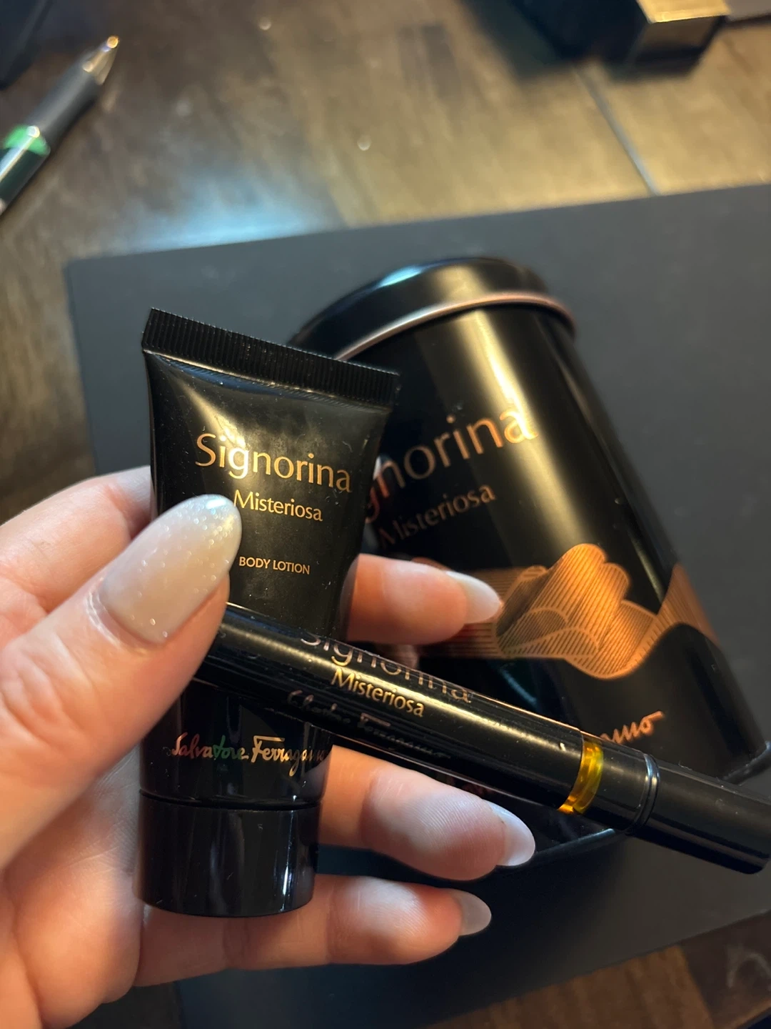 Set includes Salvatore Ferragamo Signorina Misteriosa Body Lotion (30ml) and a Natural Spray (5ml). Perfect for travel or sampling.