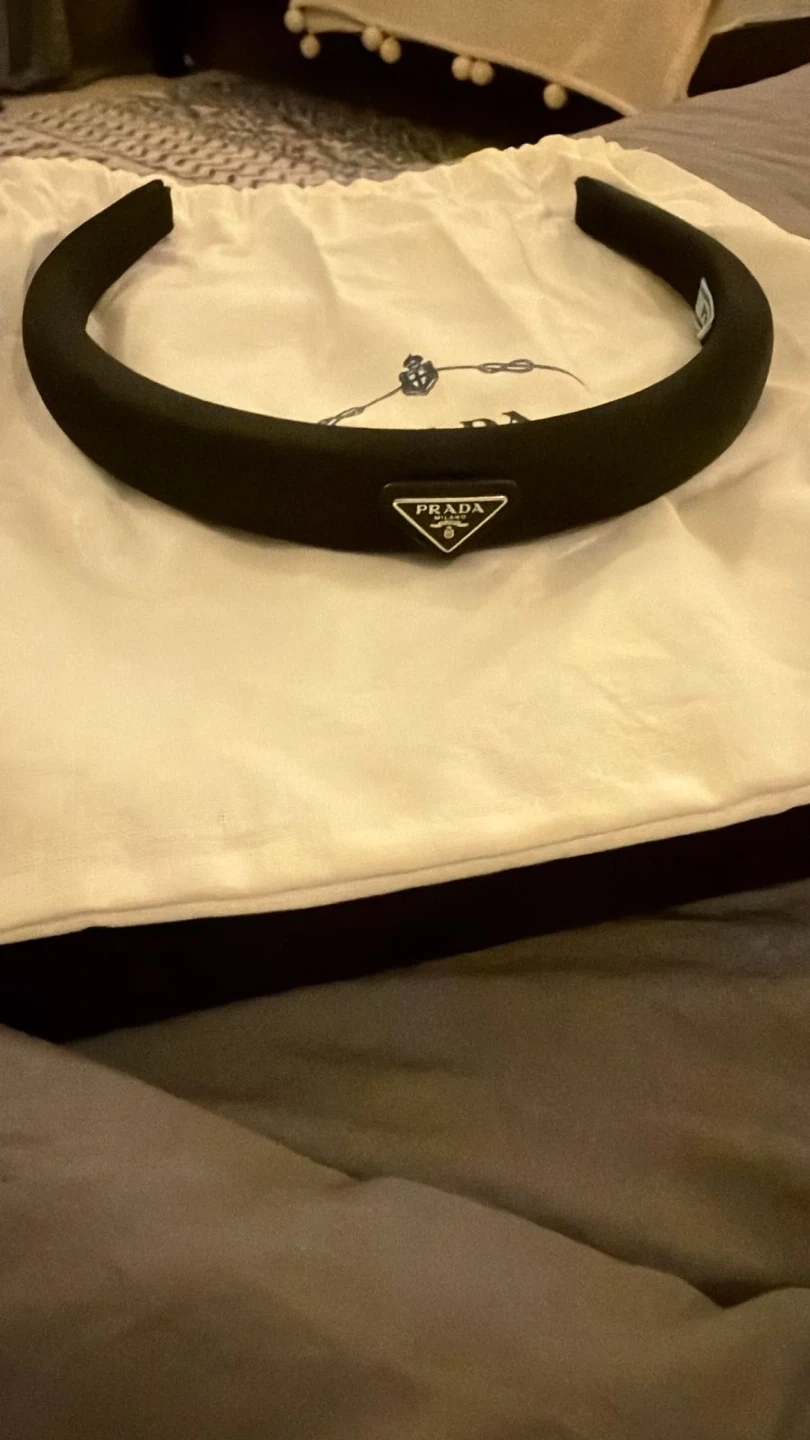 This is a black padded headband from Prada. It comes with its original dust bag and box. A classic accessory for elevating any outfit.
