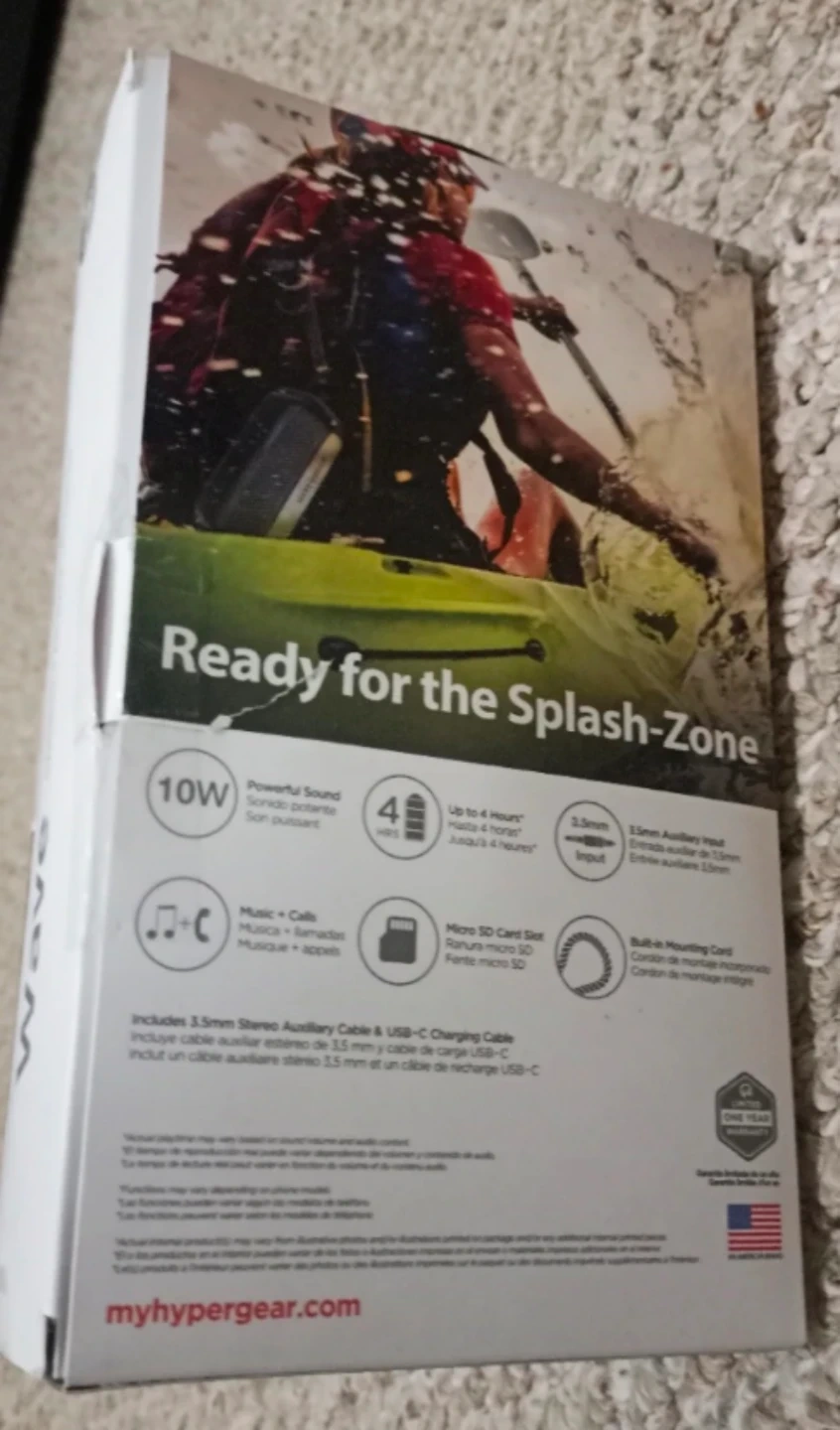 HyperGear Wave speaker offers 10W powerful sound. It's Bluetooth enabled and comes with a micro SD card slot. Includes a 3.5mm auxiliary cable and USB-C charging cable. Still in boxes.