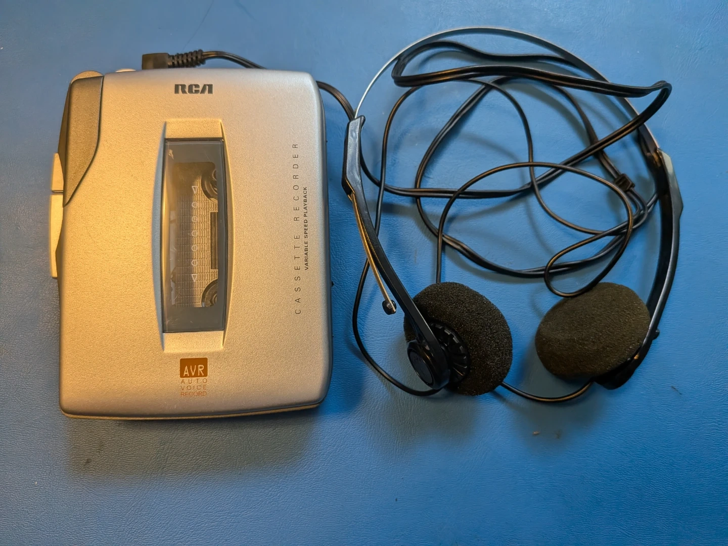 In good condition. Seems to play tapes well and at the correct speed. Comes with the retro stereo headphones shown in the photo. Takes two AA batteries for power.