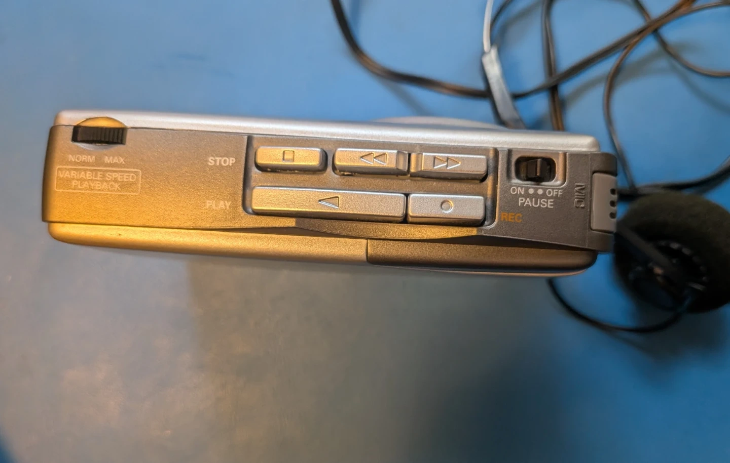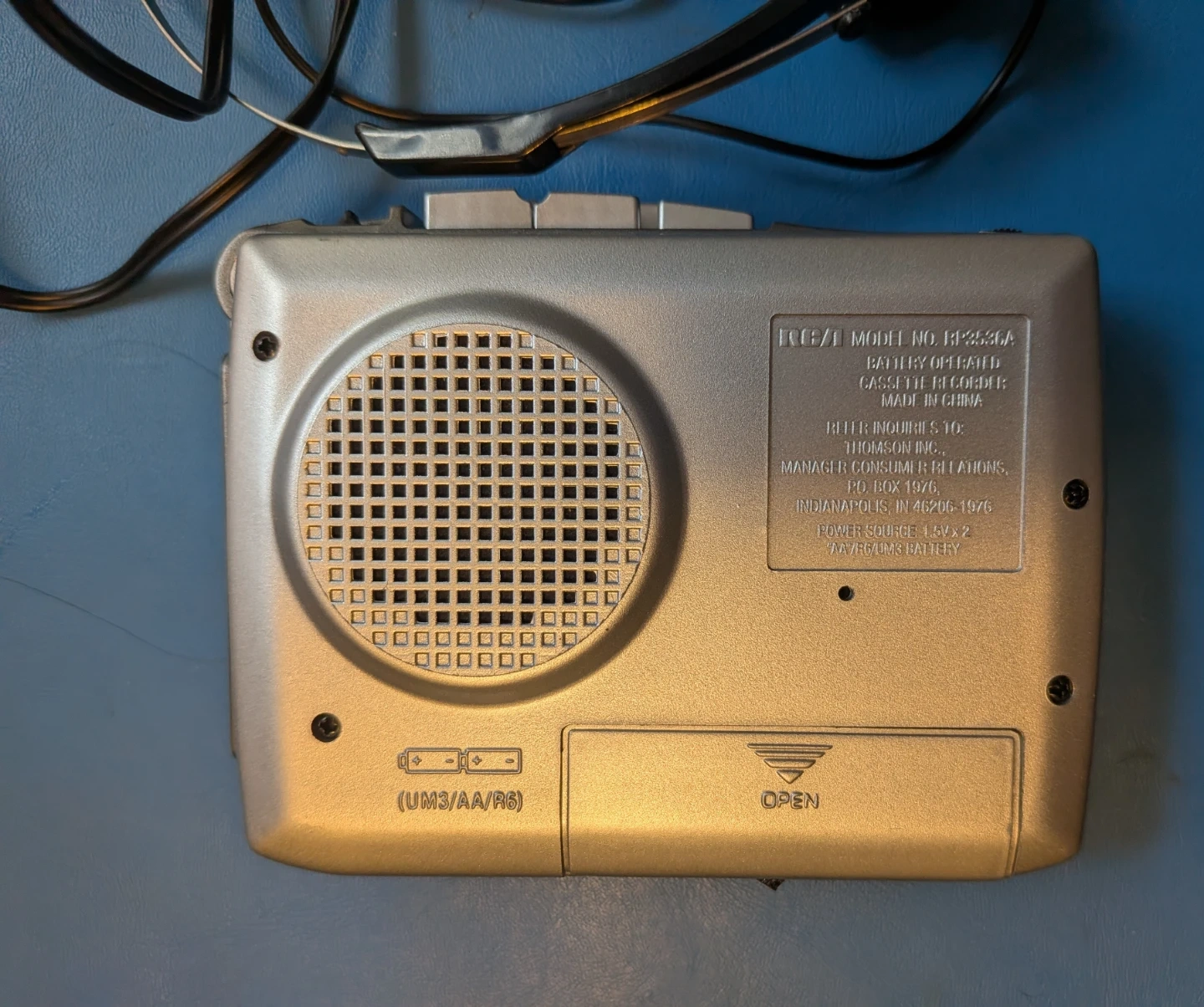 In good condition. Seems to play tapes well and at the correct speed. Comes with the retro stereo headphones shown in the photo. Takes two AA batteries for power.