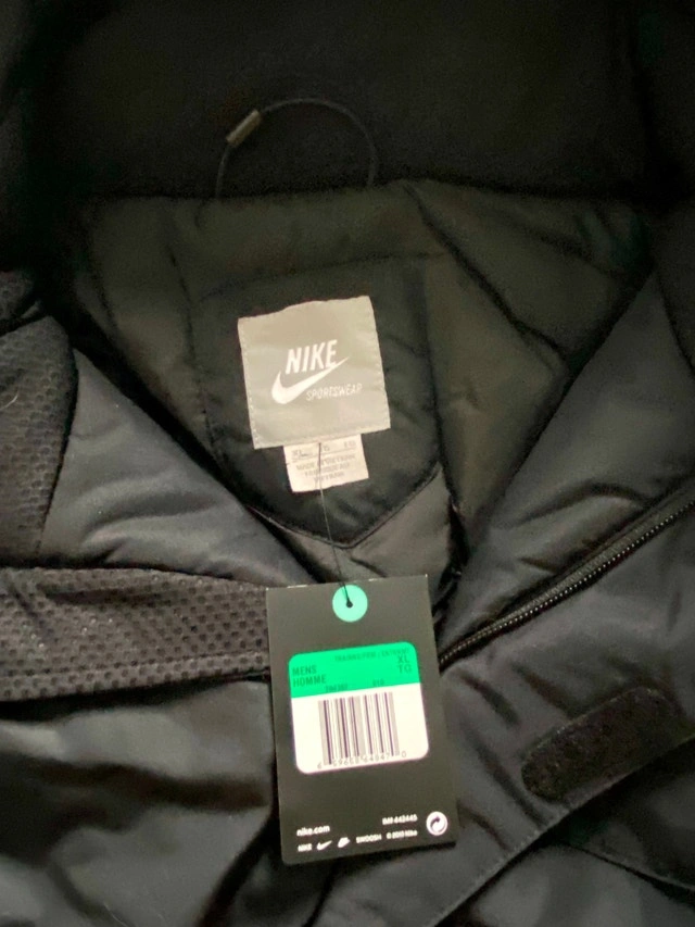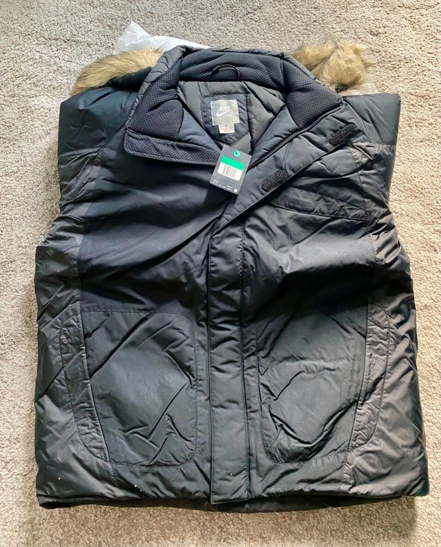 Brand new, never worn Nike insulated parka. Perfect for harsh winter weather! Super warm with a cozy insulated lining and a stylish faux fur–trimmed hood. Size Medium & XL. Price: $100. Pickup: Lakeshore Boulevard West (pickup only).