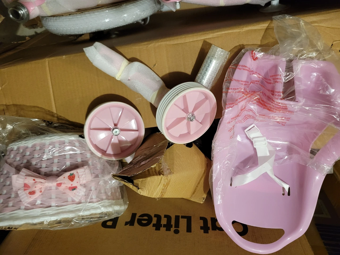Bike included basket, trailing wheels and doll carrier