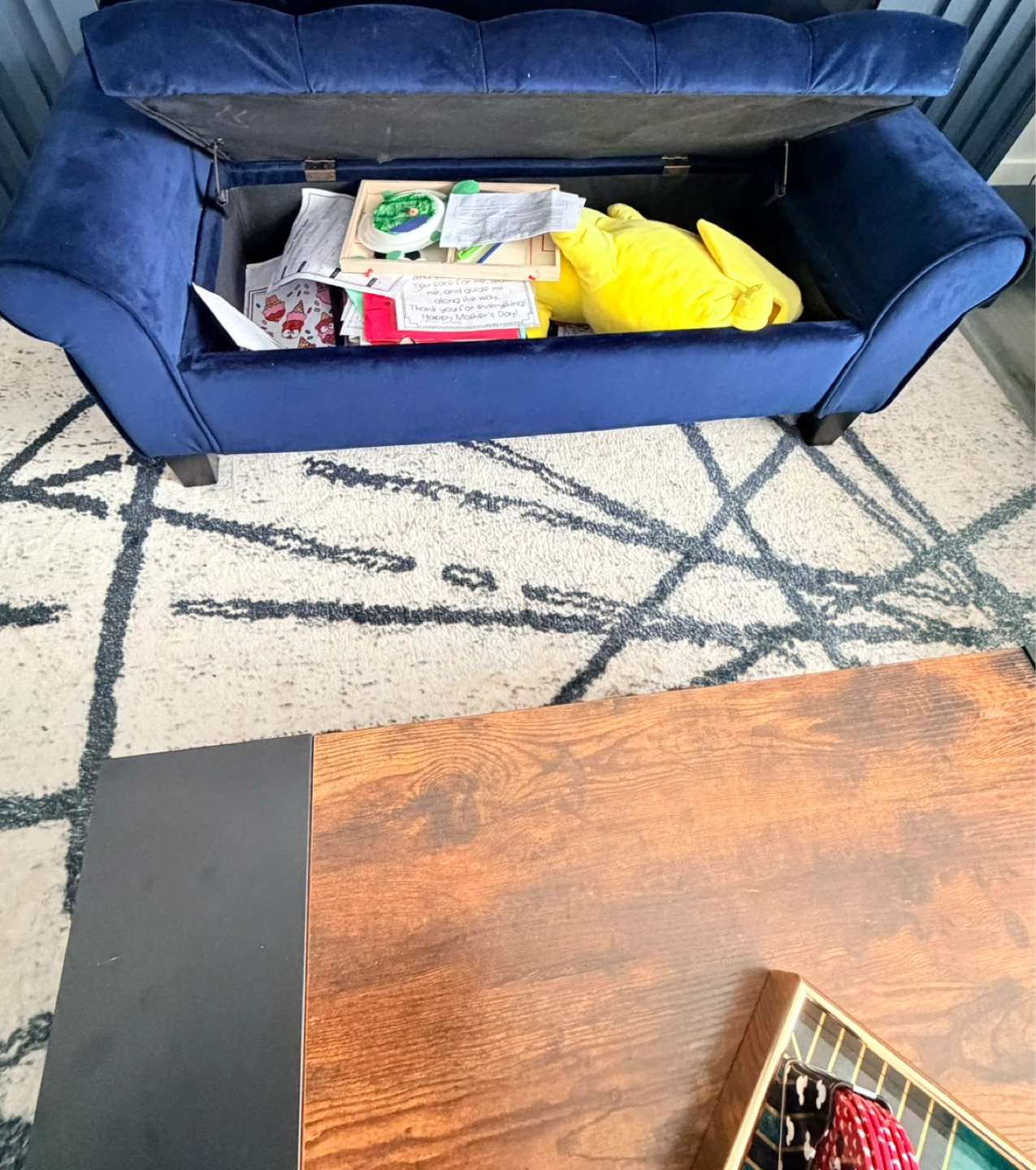 This blue velvet bench offers stylish tufted detailing and convenient storage inside. It's perfect for stashing blankets, toys, or other household items neatly away. The rich blue colour and plush velvet material add a touch of elegance to any room.