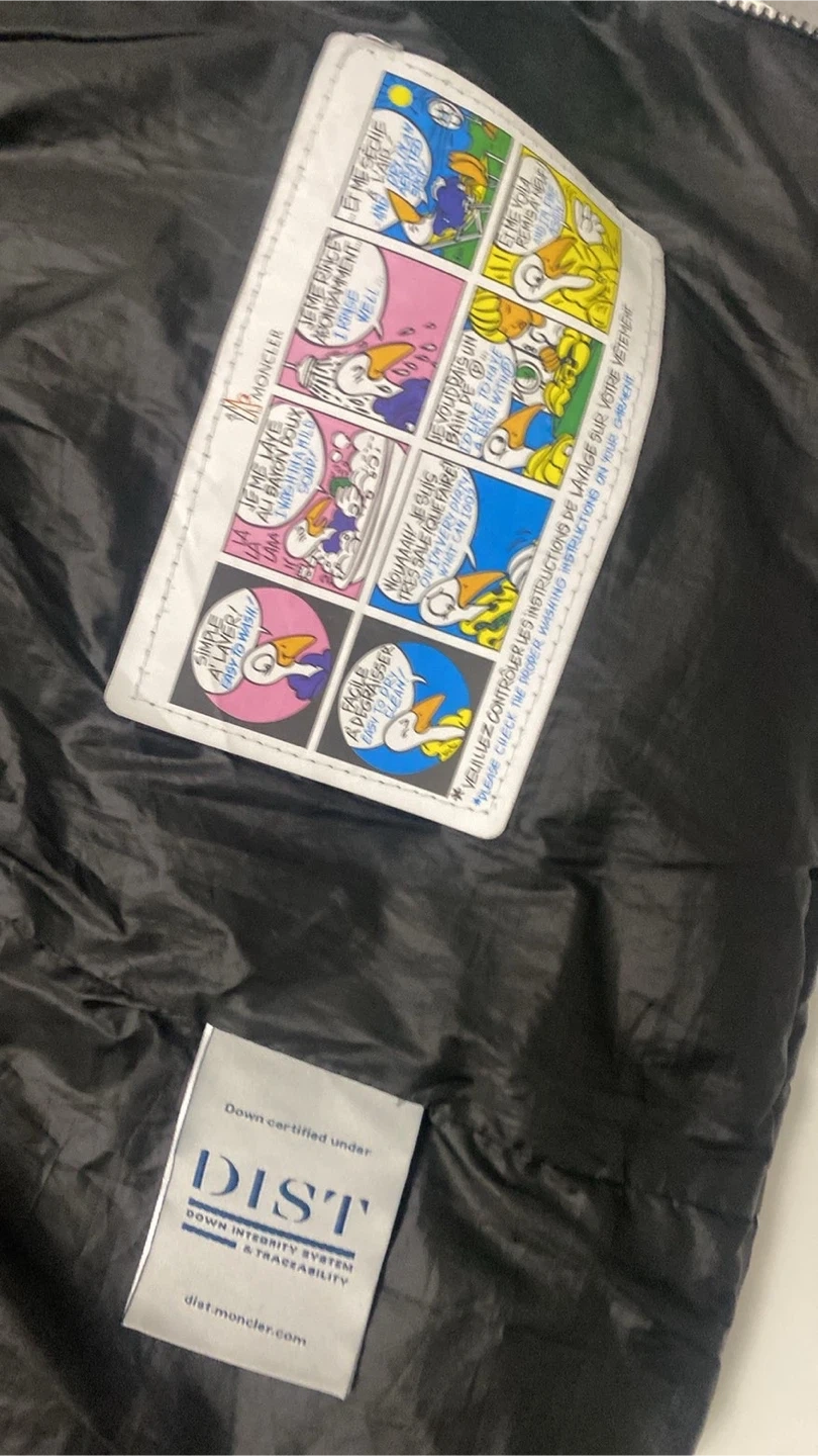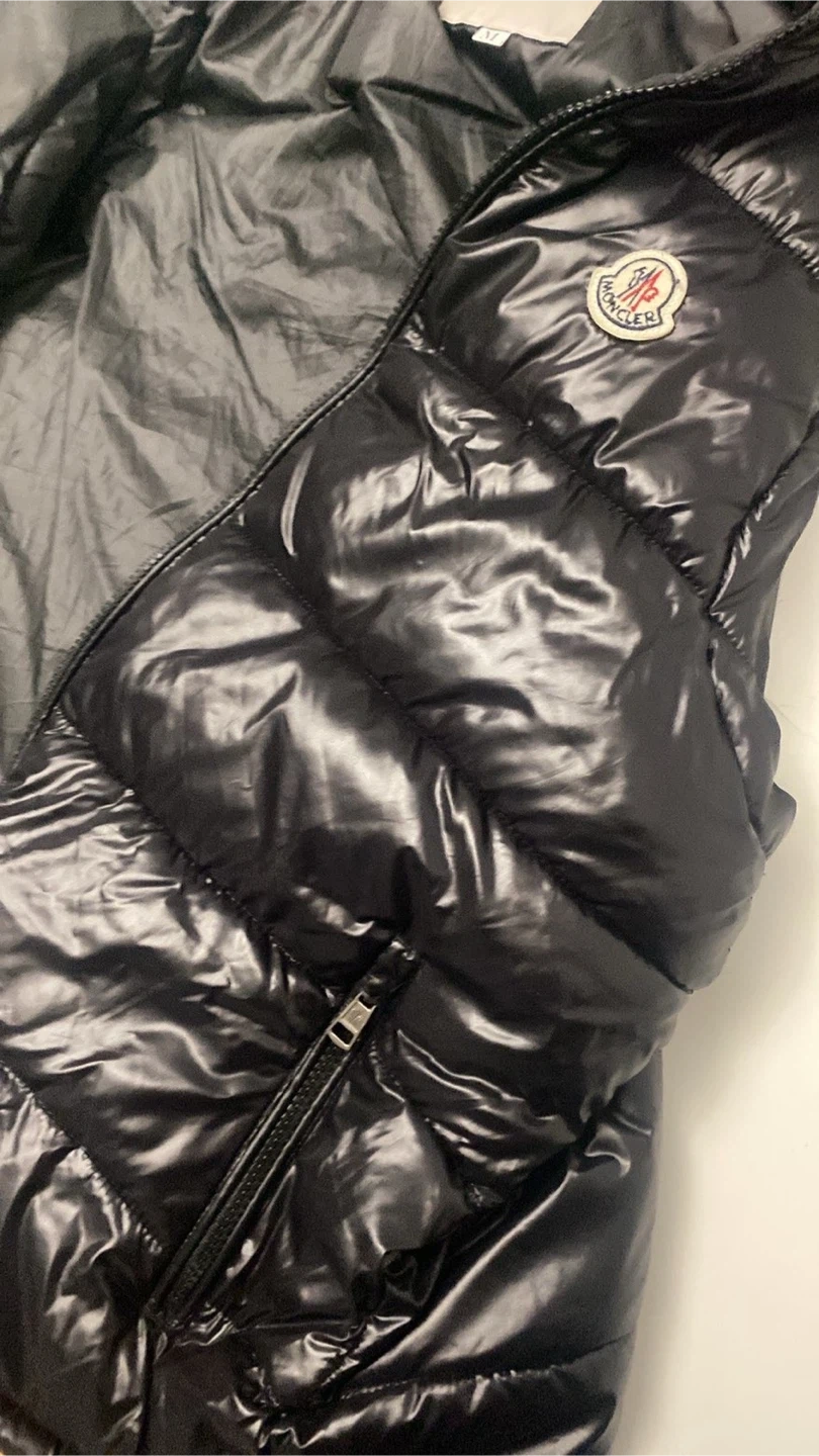 This is a Moncler black down vest in size medium. It's made with a shiny nylon exterior and features a zip-up front closure. Includes pockets with zippers. It scans to real website.