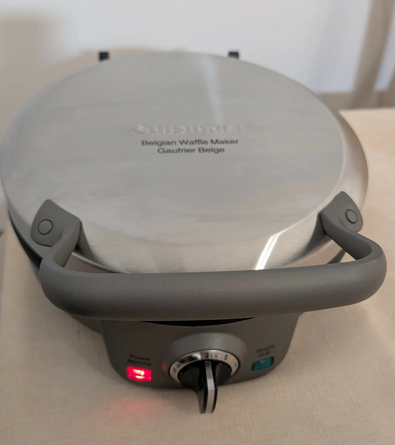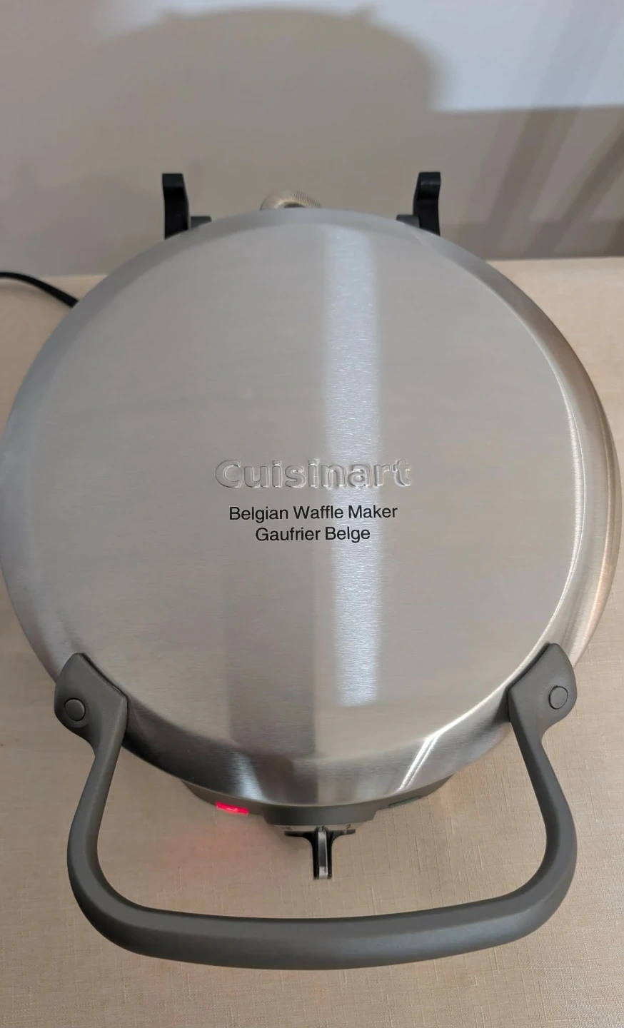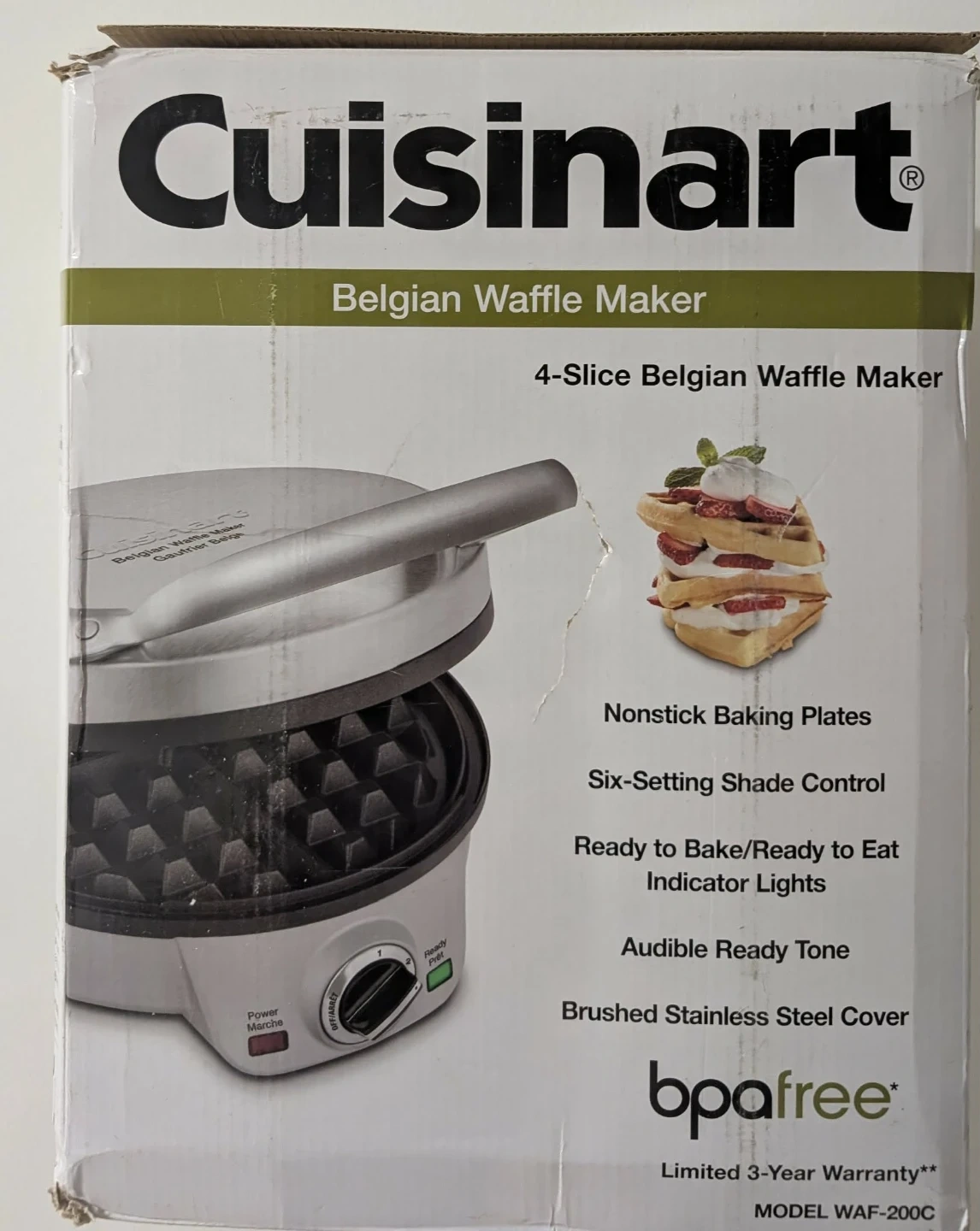 This is a 4-slice Belgian waffle maker with nonstick baking plates, so waffles don't stick. It also has a temperature dial that offers six browning levels, so every waffle is baked to your liking. The indicator lights signal preheating and when the waffles are done. It also includes an audible beep to let you know when the waffles are ready. It is BPA free.