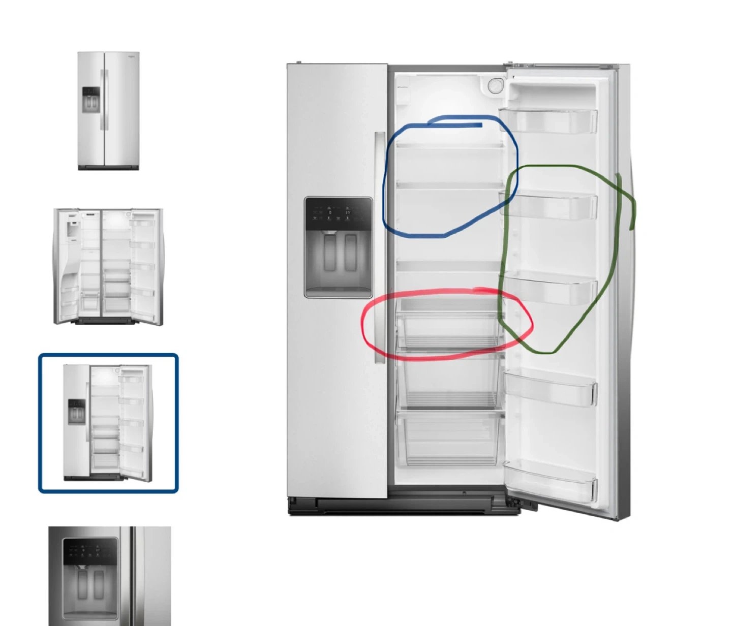 FRIDGE shelves for the Whirlpool WRSC5536RZ00. These replacements are from Whirlpool brand and are NOT the generic versions from Amazon.