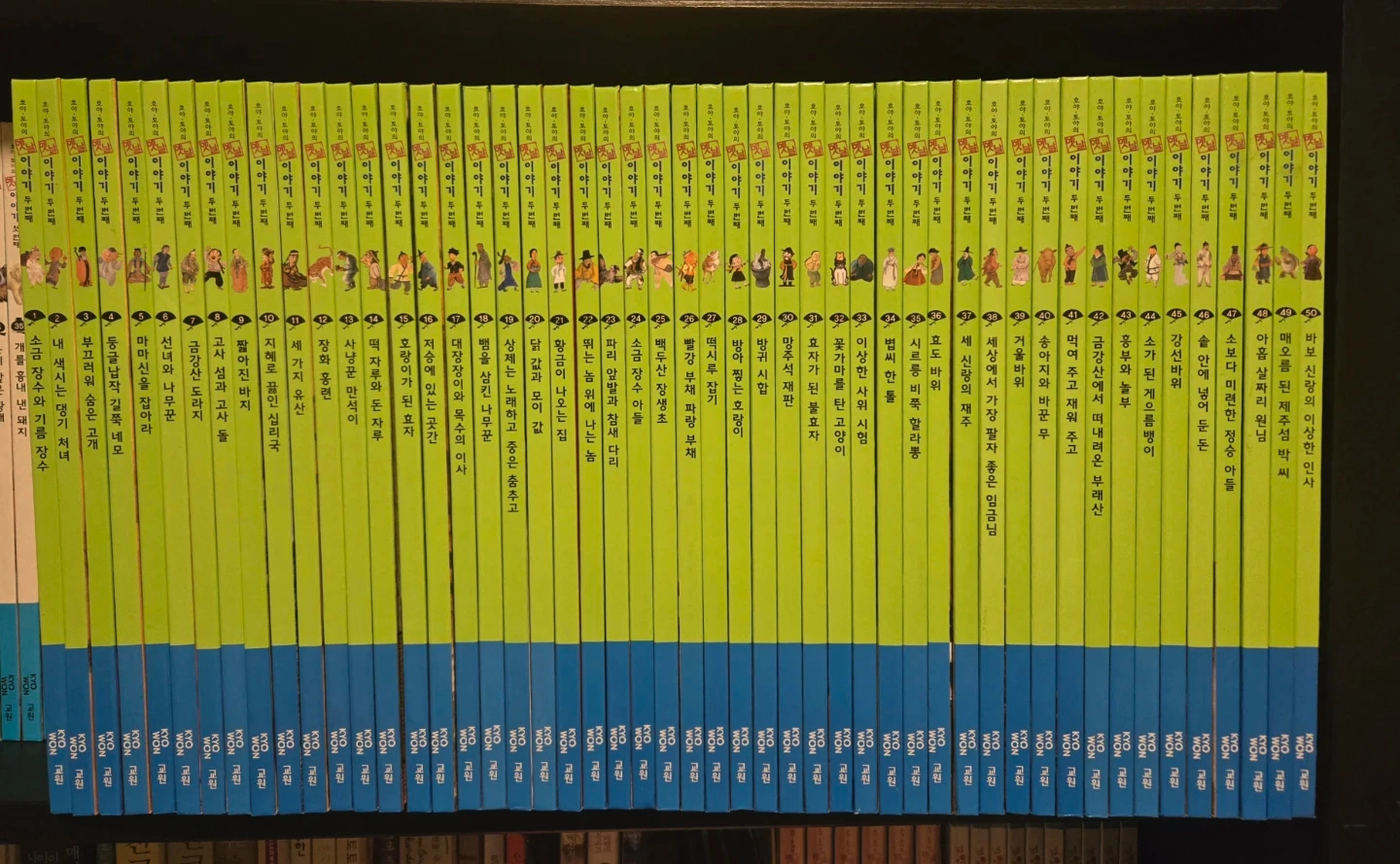 This is a complete set of 50 Korean children's storybooks titled 'Hoya Hoya Story Volume 2'. Each book features a unique story and illustrations. They're great for young readers learning Korean. The books are all in excellent condition.