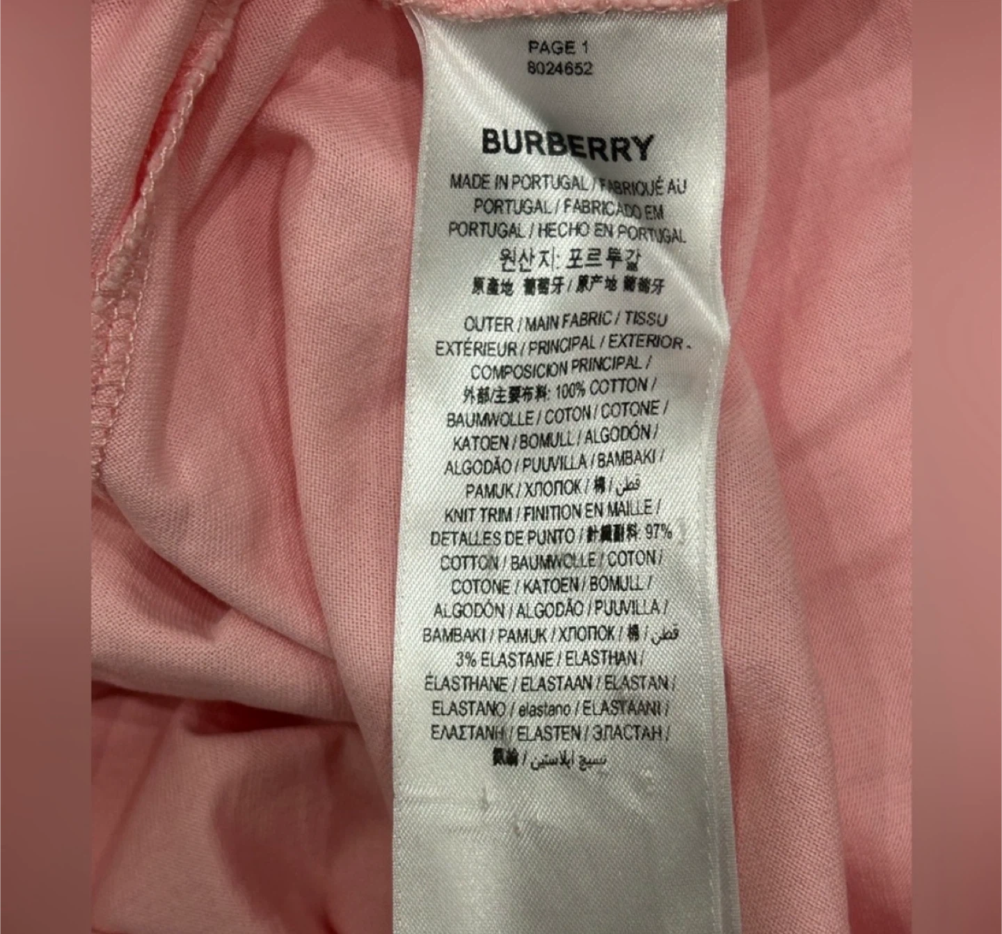 Selling a cute Burberry T-shirt in a lovely shade of pink! It features a deer graphic on the front. The size is M, and it's made from 100% cotton with 3% elastane for a bit of stretch