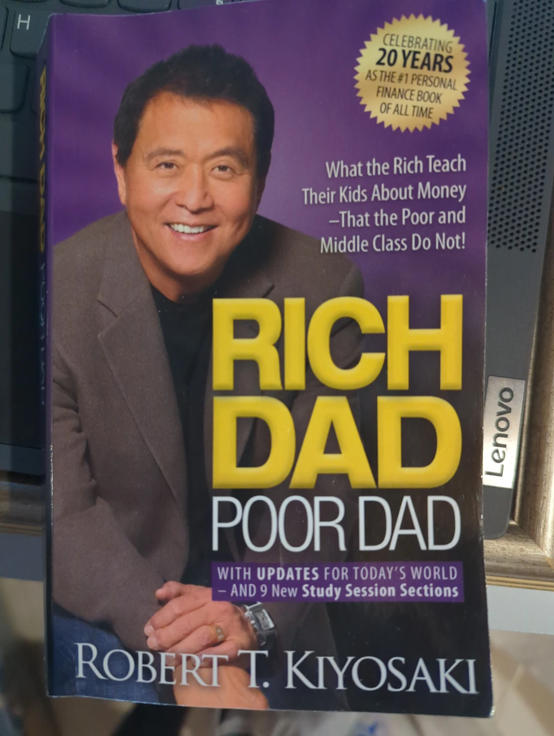 This is the personal finance book 'Rich Dad Poor Dad' by Robert T. Kiyosaki. It includes updates for today's world and 9 new study session sections.
