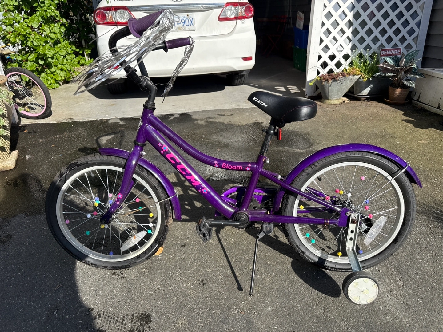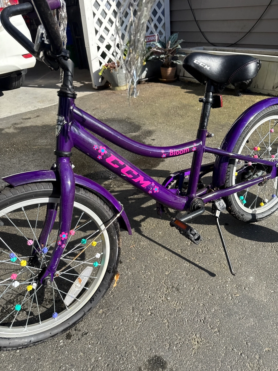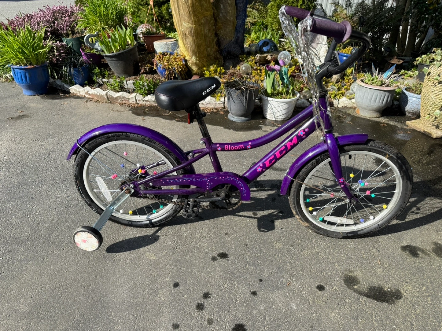 Buy & SellCCM Bloom Girls' Bike with Training WheelsCCM Bloom Girls' Bike with Training Wheels$25Purple girls' bike, CCM brand. Bloom model. Includes training wheels. Some minor wear.ConditionGoodAge3-5 yearsWHERE TO MEETSurreyView MapSELLERverifiedJohnNewton942 reviews1 chats·0 favorites·24 viewsSEND CHAT TO SELLERHi John! I’m interested in your listing.Hi John! I’m interested in your listing.Get the Karrot app to chatSign In to chat