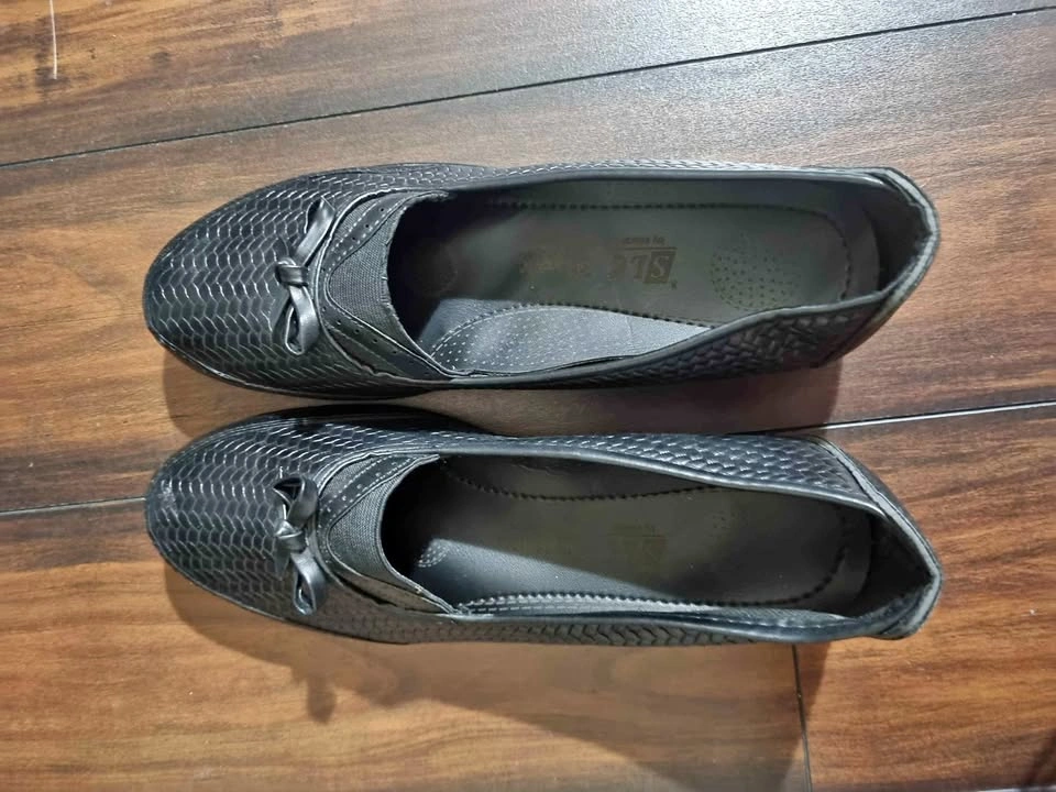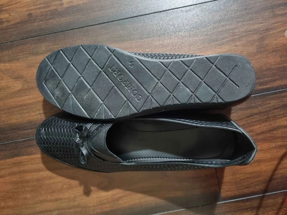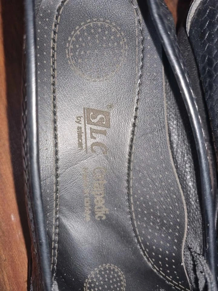 Experience all-day comfort with these high-quality SLC loafers. Size: 41 (European). Origin: Premium quality, Made in Turkey. Design: Beautiful black woven pattern with a stylish bow detail. Key Feature: Specially designed "Comfort" sole for extra support during long walks or work hours. Condition: New, very clean and well-maintained.
