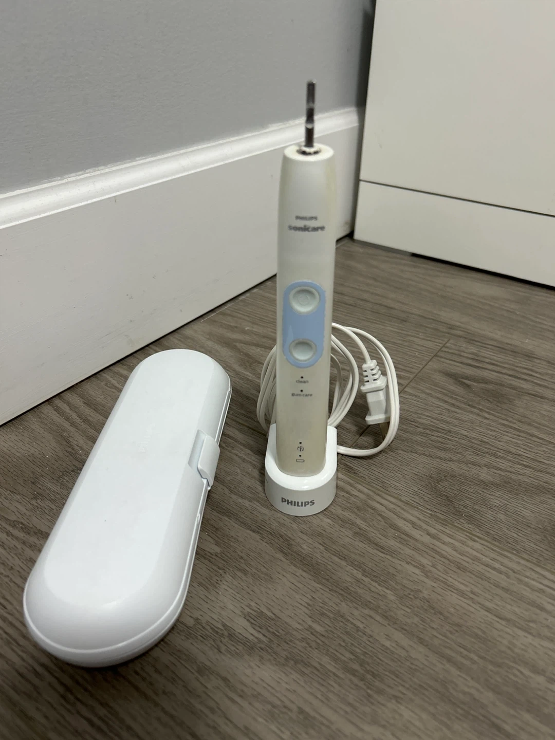 Selling a Philips Sonicare electric toothbrush! It comes with the charging base and a travel case. It has different modes like clean and gum care. Perfect for keeping your pearly whites in tip-top shape!